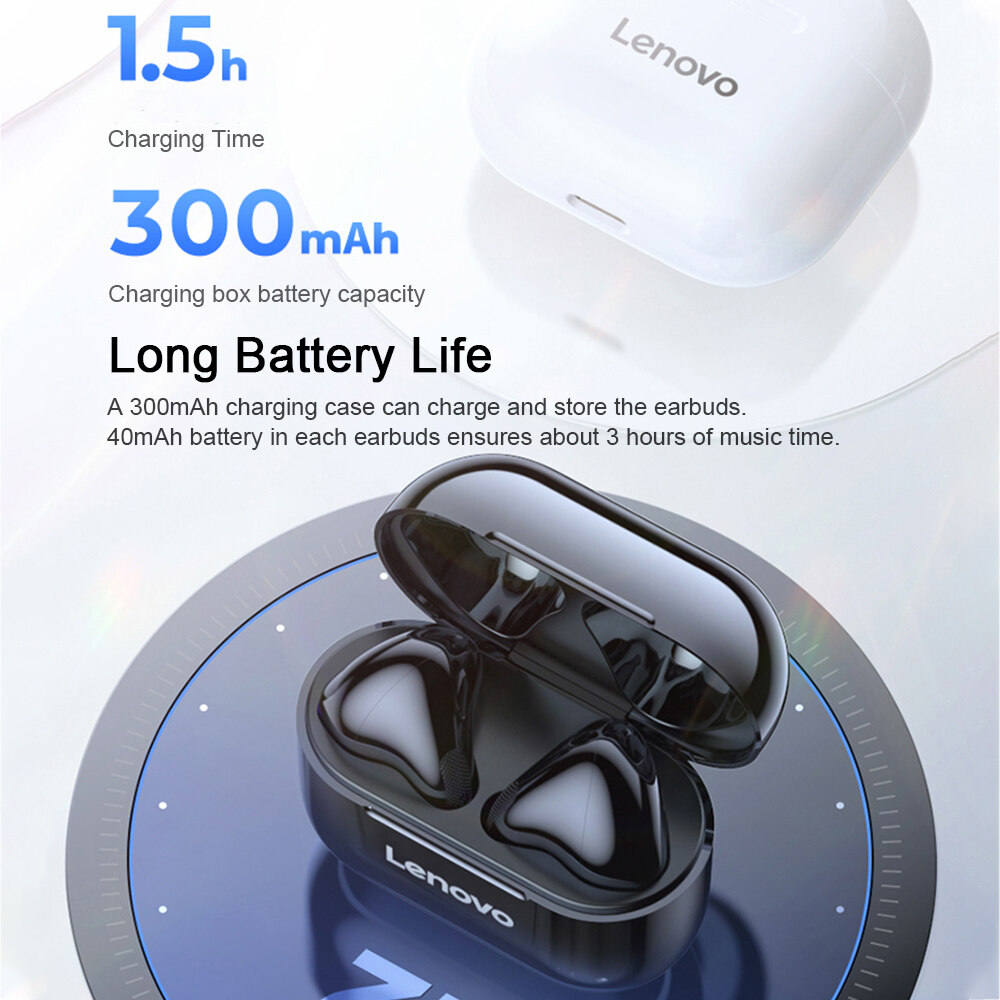 A 300mAh charging case can charge and store the earbuds. 40mAh