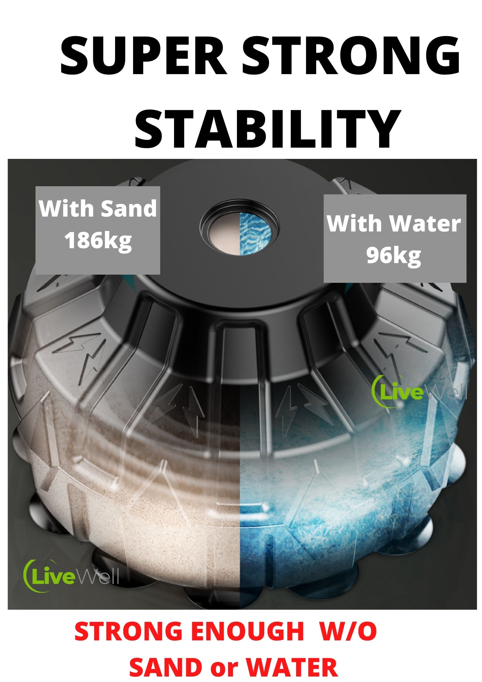 • You can even add sand/water, to make the stability even stronger.