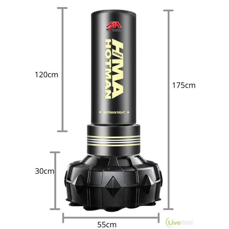 • Stressed out at work? Punch it out! This free standing punching bag is built to take some severe punishment!