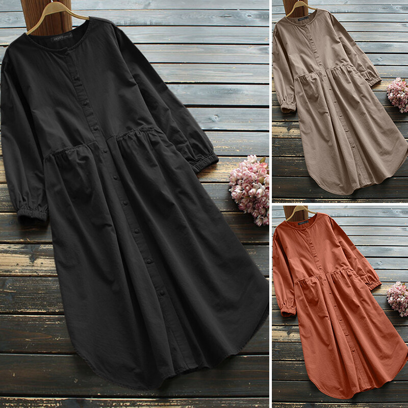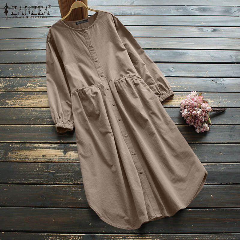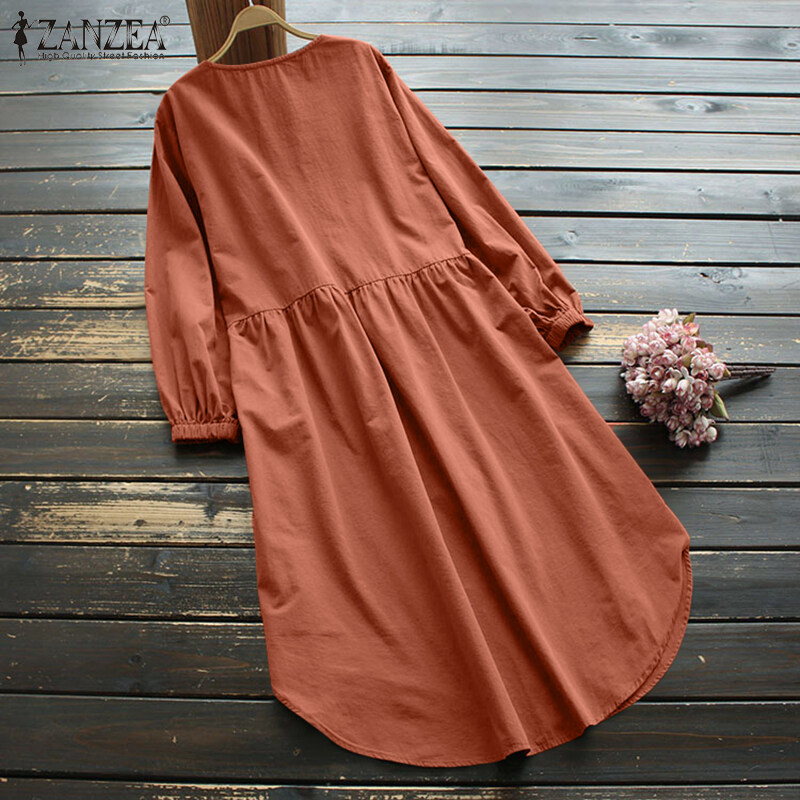 ZANZEA Women Full Sleeve Casual Holiday Party Plain Baggy Long Maxi Shirt Dress
