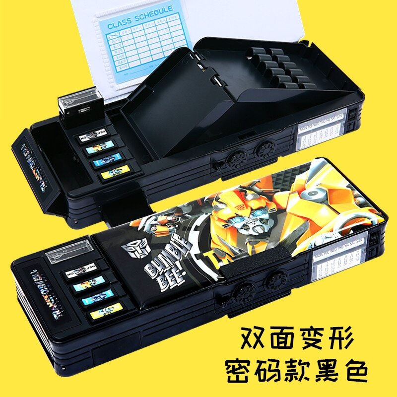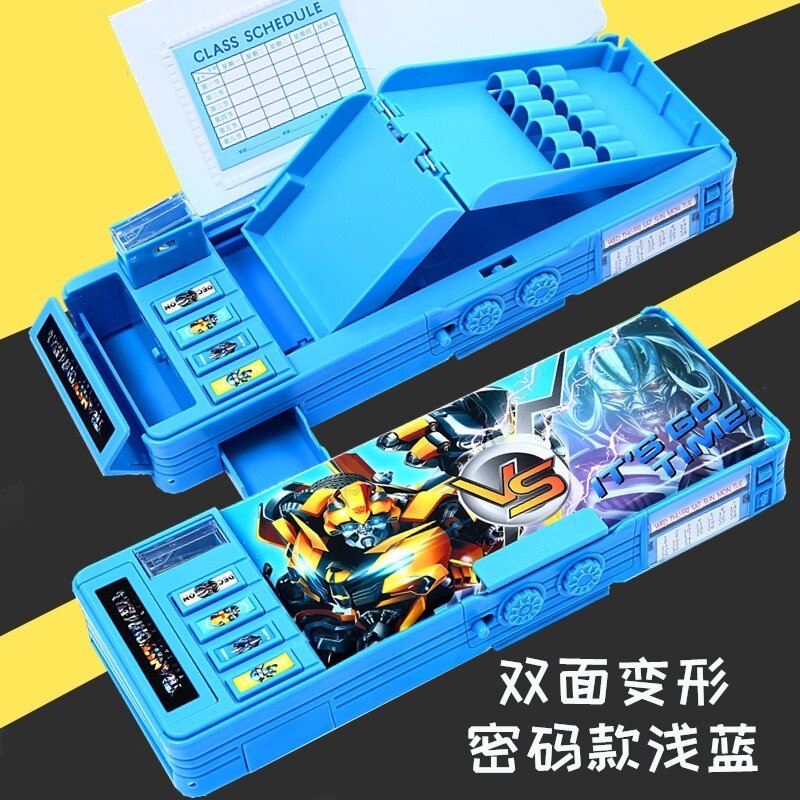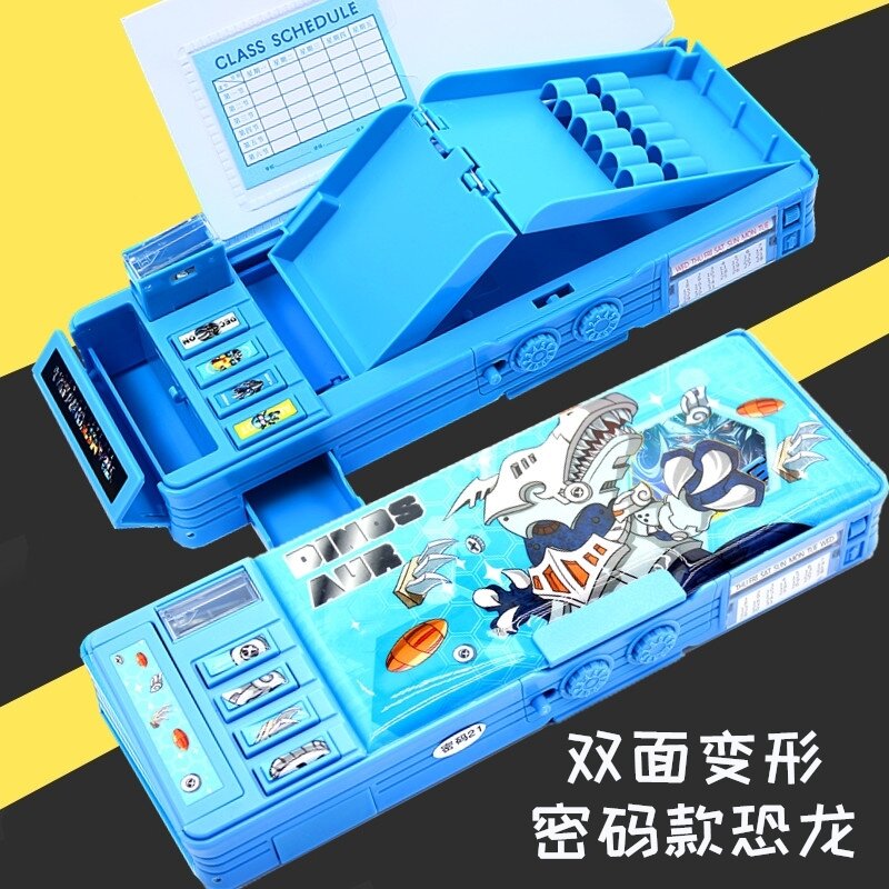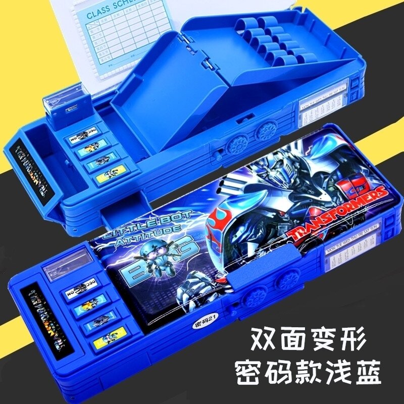 Multifunctional Password Lock Stationery Box Transformer Pencil Case Primary School Student Male Creative Deformation Personality Kindergarten Children Boys and Girls Grade 1-3 Boys and Girls Plastic