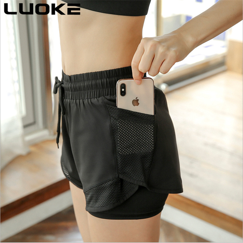 LUOKE Sport Shorts Women 2 In 1 with Pockets Sport Shorts Woman Gym Shorts Woman Fashion Printing Quick-drying Fabric