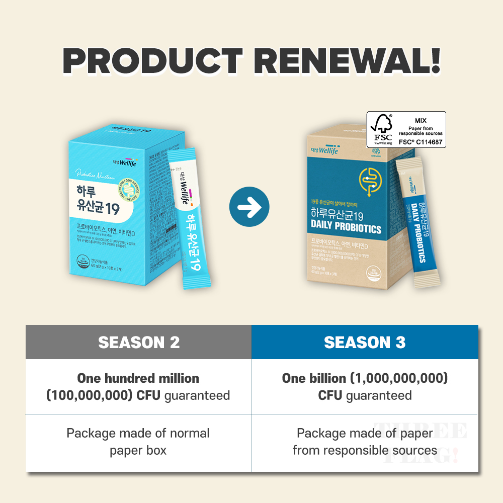- - 'Daesang Welllife Daily Probiotics 19' use patented premium probiotics.