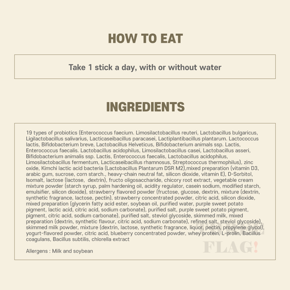 - 3) 1stick = 1 billion CFU input guaranteed by exp date