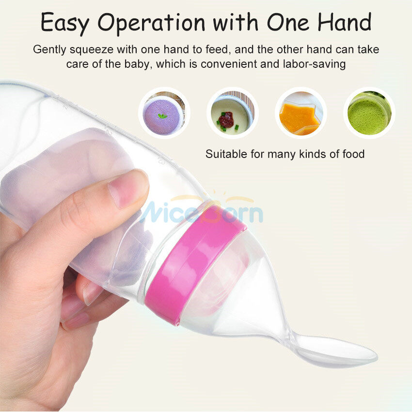 NiceBorn 3PCS Baby Food Feeder Kit Squeeze Feeding Bottle with Spoon Baby Bite Pacifier Temperature Spoon Fruit Vegetable Feeder Squeezing Food Bottles Rice Paste Juice Feeder Infant Fruit Feeder Paci