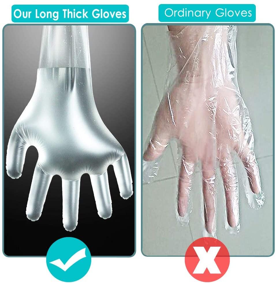 *Multi-task shoulder length, these extra long plastic gloves are handy for messy tasks where short gloves aren't enough.