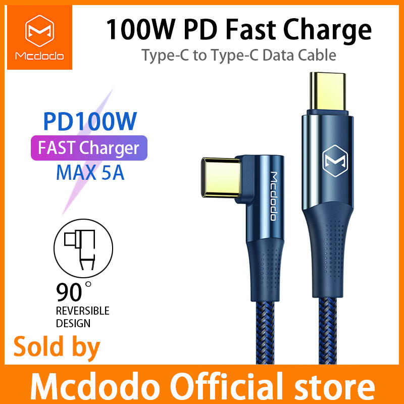 Mcdodo 90 degree elbow design 100W USB Type C Cable To USB C Cable for Samsung Huawei Xiaomi notebook macbook 2015-2020 IPAD AIR IPAD Pro PD Fast Charging Charger Cord C TO C Fully compatible with 5-