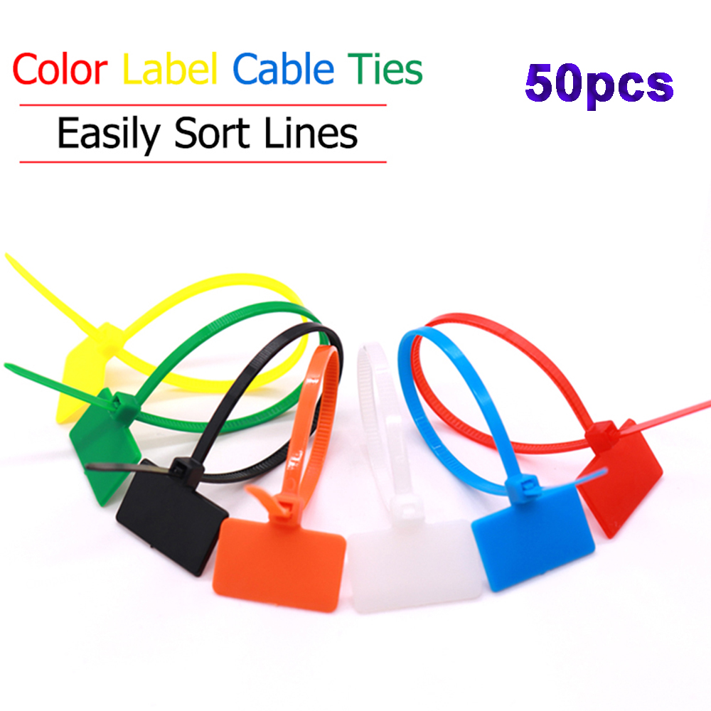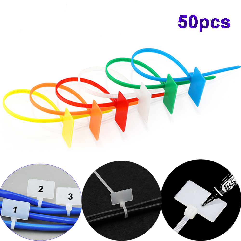 50pcs Easy Mark Self-locking Nylon Plastic Loop Wire Ties Cable Winder Labels Tag