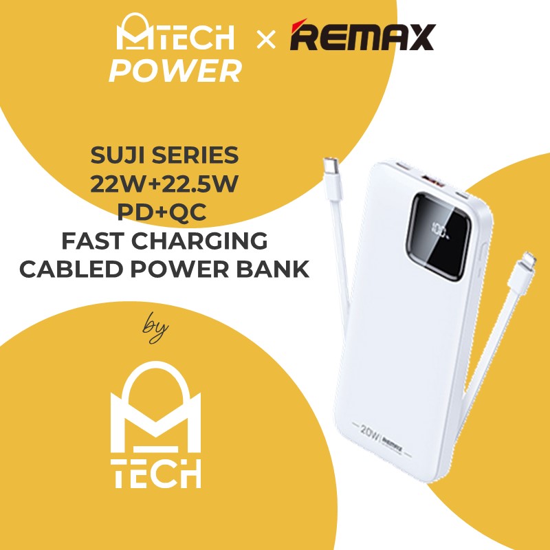 MTech Power REMAX Suji 22.5W 20W Powerbank Fast Charging with Built in Cable 10000mAh 20000 mAh 30000 Power Bank PD for Travel