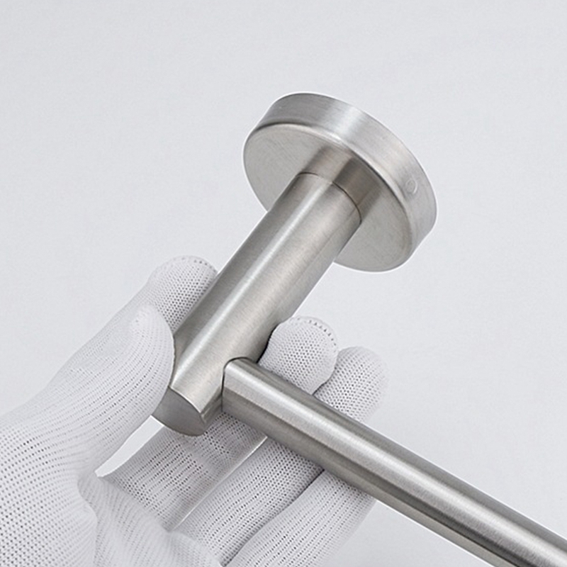2,,Max. length of paper roll is 5-inch. Holds even jumbo-sized rolls of toilet tissue. Maximize unused wall space. Large stainless steel knob at the bar end prevents toilet paper roll from falling off.
