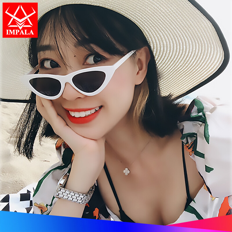 IMPALA QT1804W Fashion Women Cat Eye Sunglasses for Female Korean Style Anti Glare Beach glasses Vintage Retro Small Lens Cateye Sun Glasses Brand Designer Colorful Eyewear
