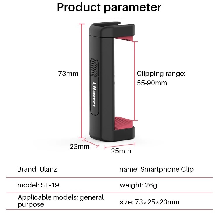 ULANZI ST-19 Phone Holder Clip Vlog Cold Shoe Mount