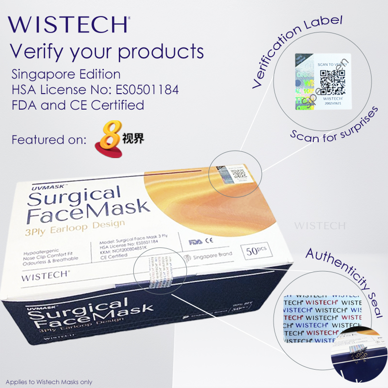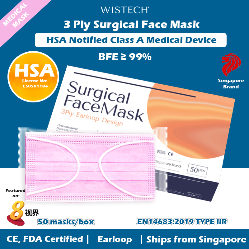 [GET %% OFF MIX AND MATCH] [Individually Sealed] (Blue/White/Black/Pink) Wistech 3 Ply Surgical Face Mask, 50 pieces, HSA Notified Medical Device, FDA CE Approved, BFE 99%