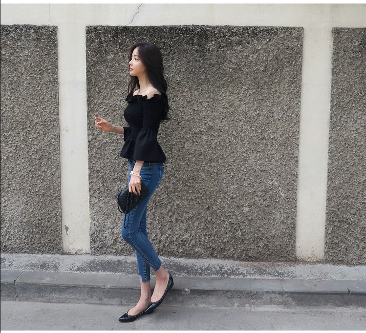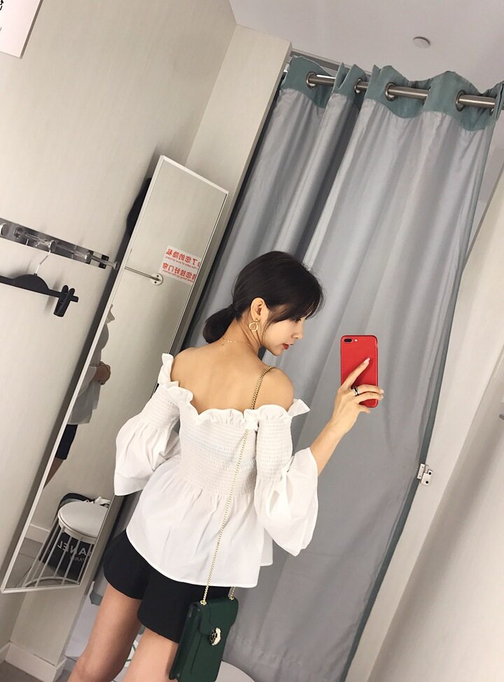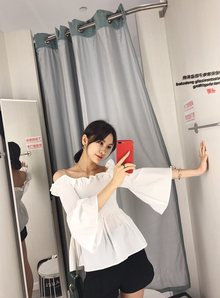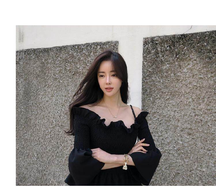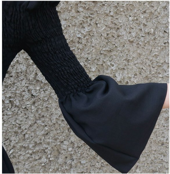 EDQRDQ Womens Smocked Off The Shoulder Tops Summer Flared Bell Sleeve Chiffon Blouses T-Shirt
