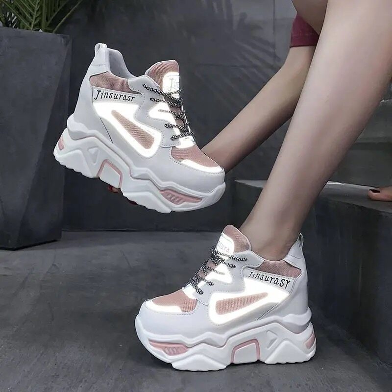 Genuine Leather Breathable Mesh Elevator 12cm Women's Shoes Sports High Heel Platform Muffin Shoes 2022 Spring and Summer Slimming
