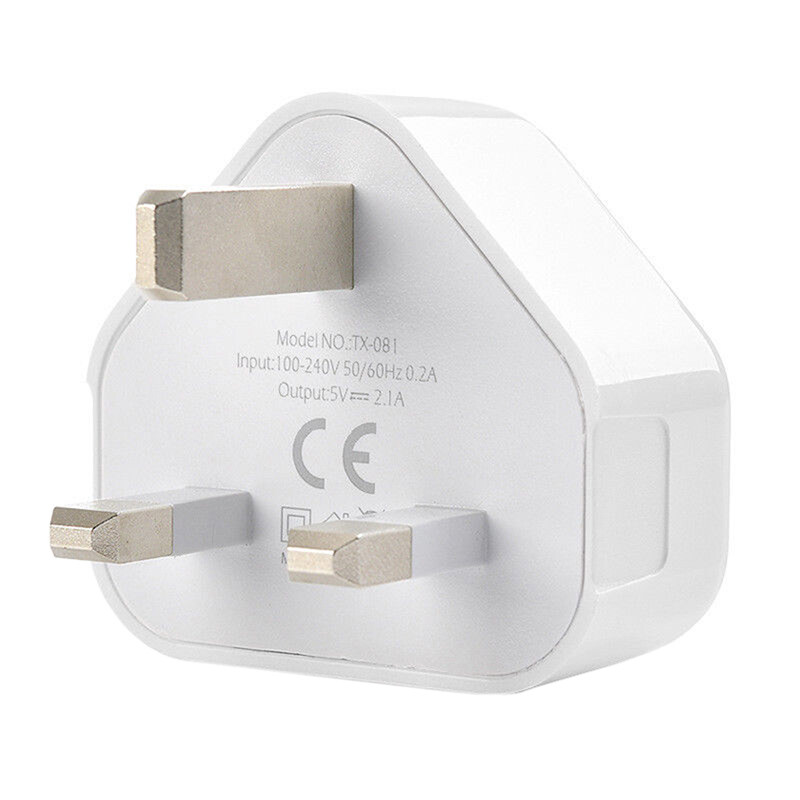 Ministar Mains 3 Pin Plug USB Adaptor Wall Charger Travel Charging Cable For Iphone Samsung