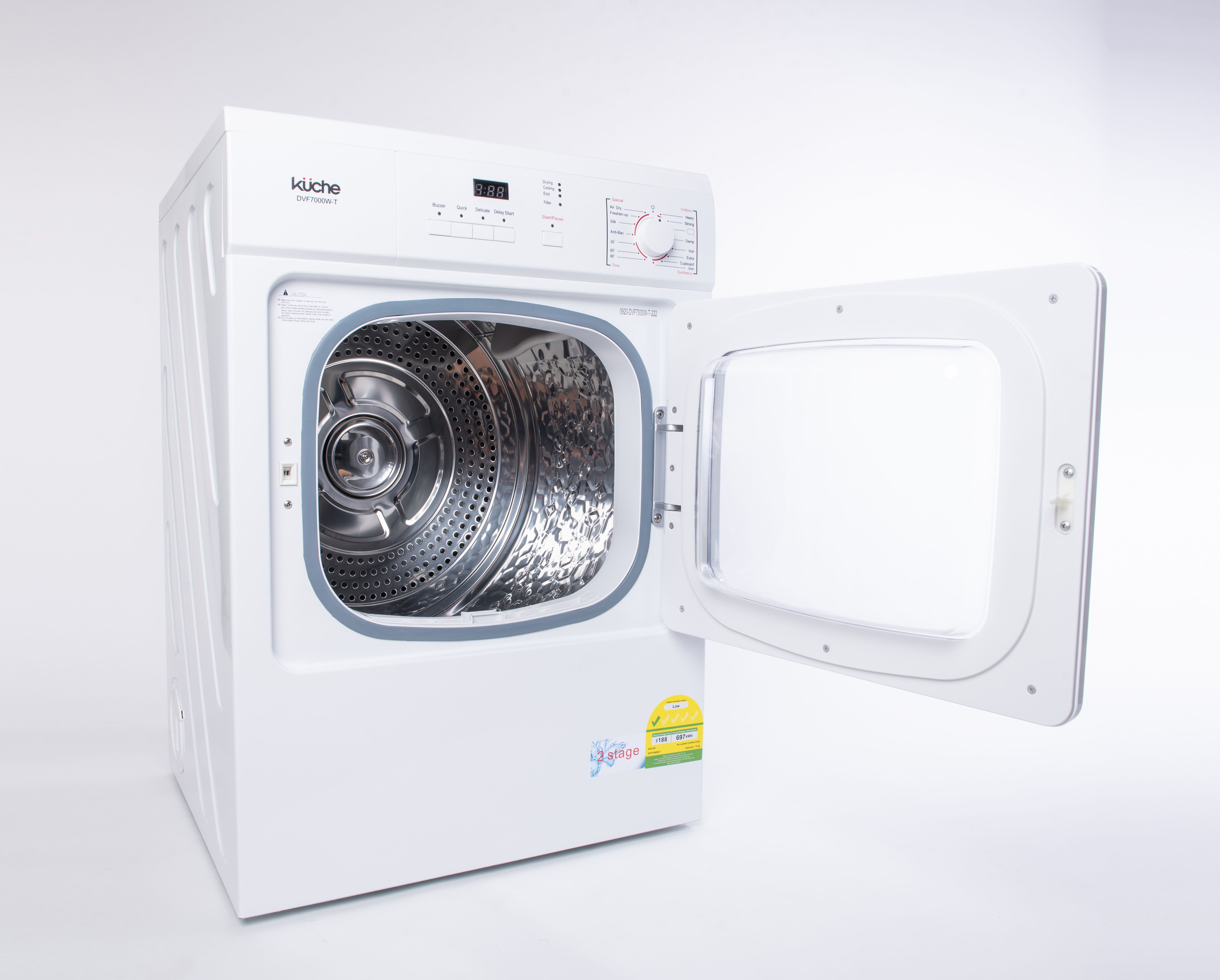 Kuche Dryer - DVF7000W-T 7KG Front Load Vented Dryer with Transparent Door