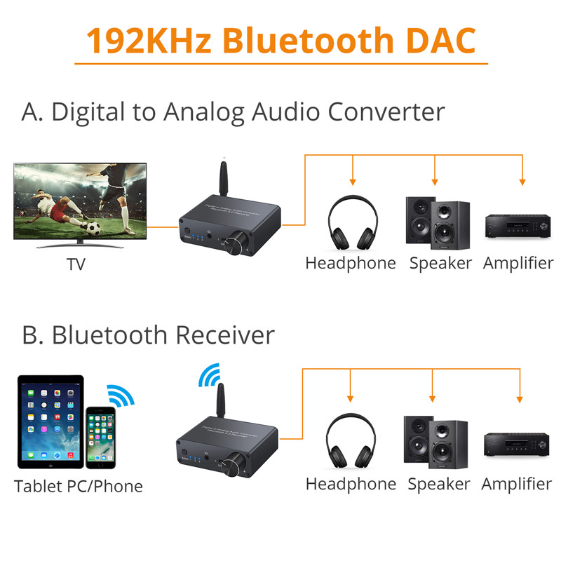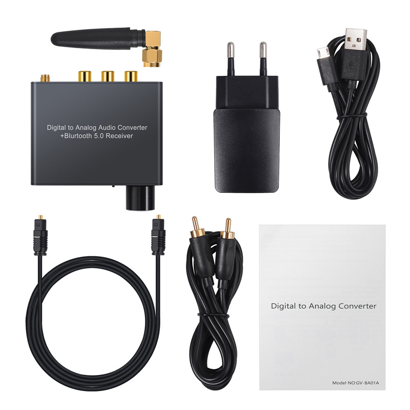 Package:1 x 192kHz Bluetooth DAC Converter1 x 1m Optical Cable1 x 1m Coaxial Cable1 x Power Adaptor1 x User Manual