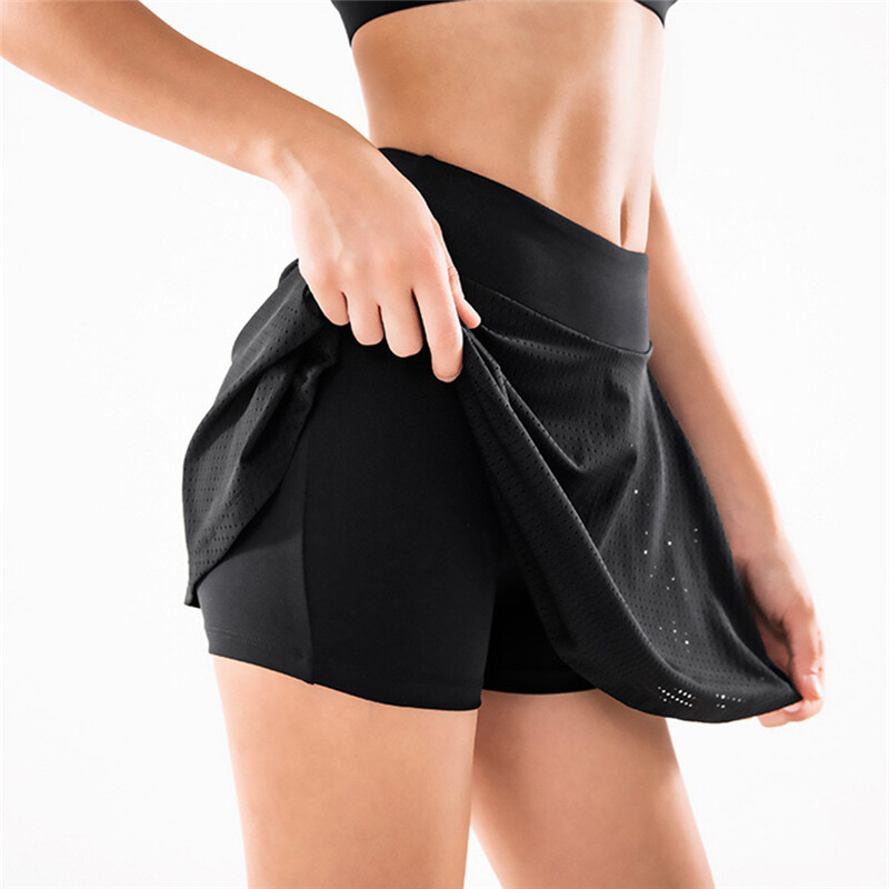Summer Fashion Women Fitness Leggings Ladies Shorts Double-Layer Quick-Drying Gym Running Yoga Sports Shorts Casual Solid Color Short Pants Beach Skirt