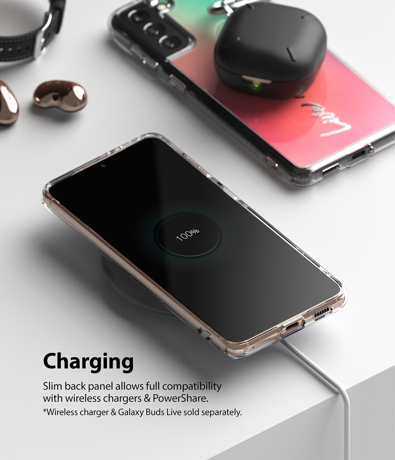 Ringke [FUSION] for Galaxy S21 Case, Hard Clear PC Back [Military Drop Defense] Lightweight Upgraded Transparent TPU Bumper Cover with Wrist Strap