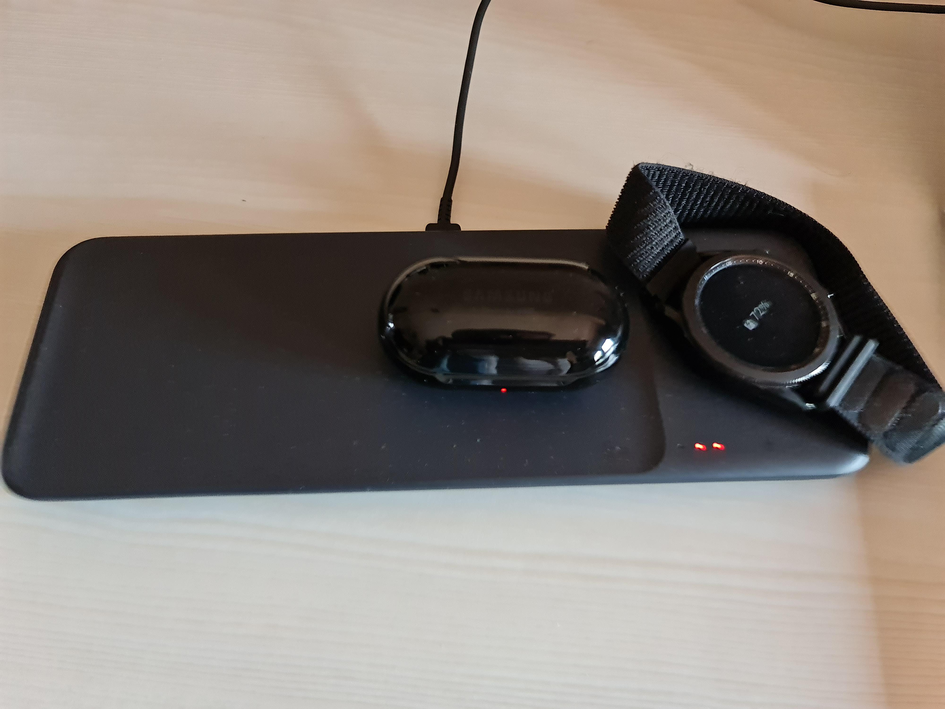• Features: Wireless Fast Charging (Samsung Galaxy, Apple iPhone), Qi (Galaxy Buds), Galaxy Watch