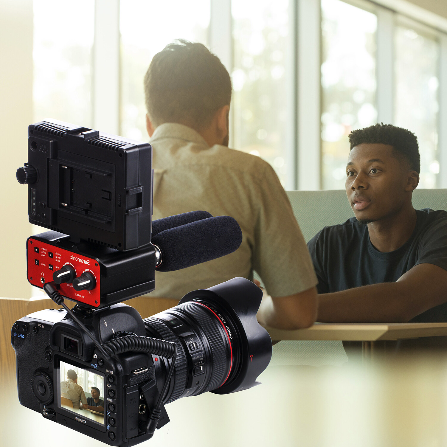 NEW Release- SR-PAX1 TWO-CHANNEL AUDIO MIXER WITH PHANTOM POWERThe Saramonic SR-PAX1 is a two-channel audio mixer with phantom power, specially designed for mirrorless digital camera, DSLR camera and camcorder with a microphone jack. It is ideal for recording professional quality audio from two sources and mixing them into your camera.With two sets of inputs, the SR-PAX1 accepts signals from a wide variety of mic or line level sources such as balanced XLR microphones, wireless microphones, guitars, or any musical instruments with a 6.35mm connector. The 3.5mm inputs are also ideal for connecting audio devices with a 3.5mm output such as a smartphone or an MP3 player. The input levels of each channel can be easily controlled with the dual control knobs. A phone jack allows you to monitor the audio in real time. The SR-PAX1 makes your recording work much easier.