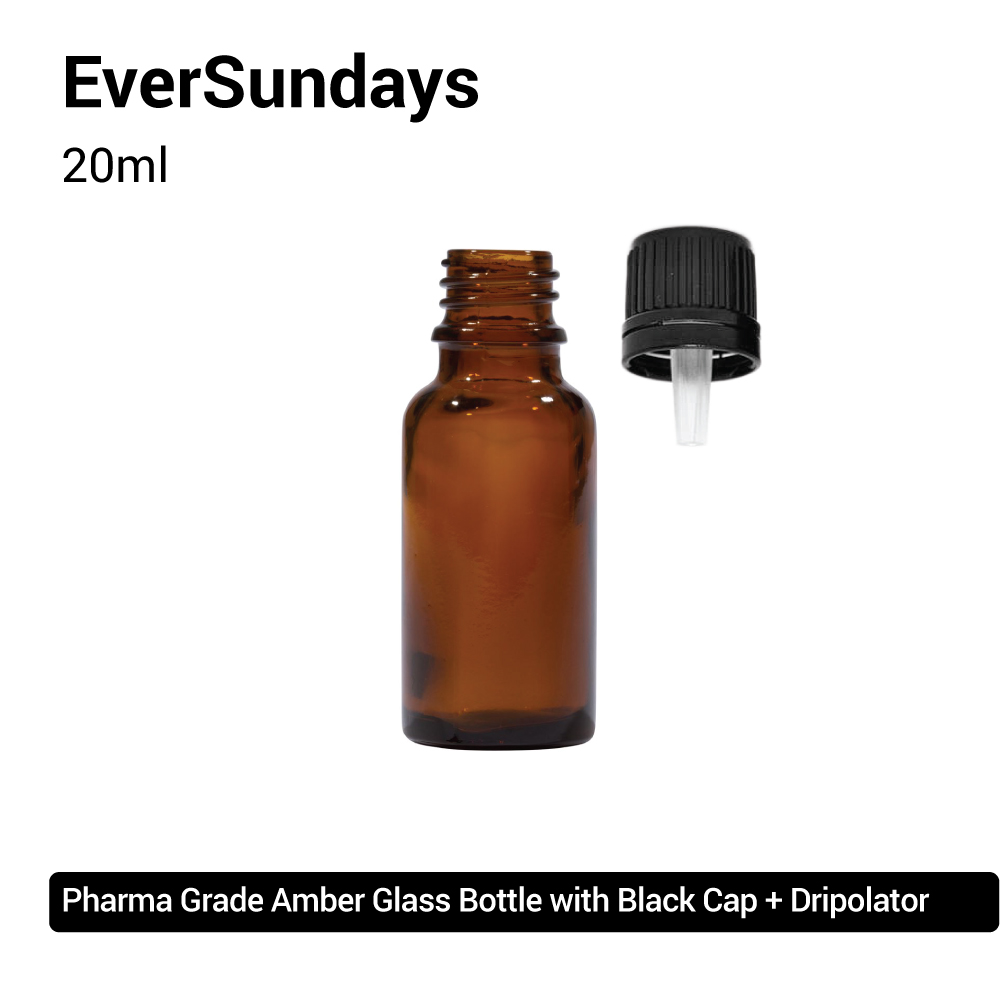 Each bottle comes paired with a black or white cap + dripolator, suitable for strong liquid like essential oils. Please note that many sold in the market are not suitable and may degrade very quickly over time, compromising the quality of your contents.