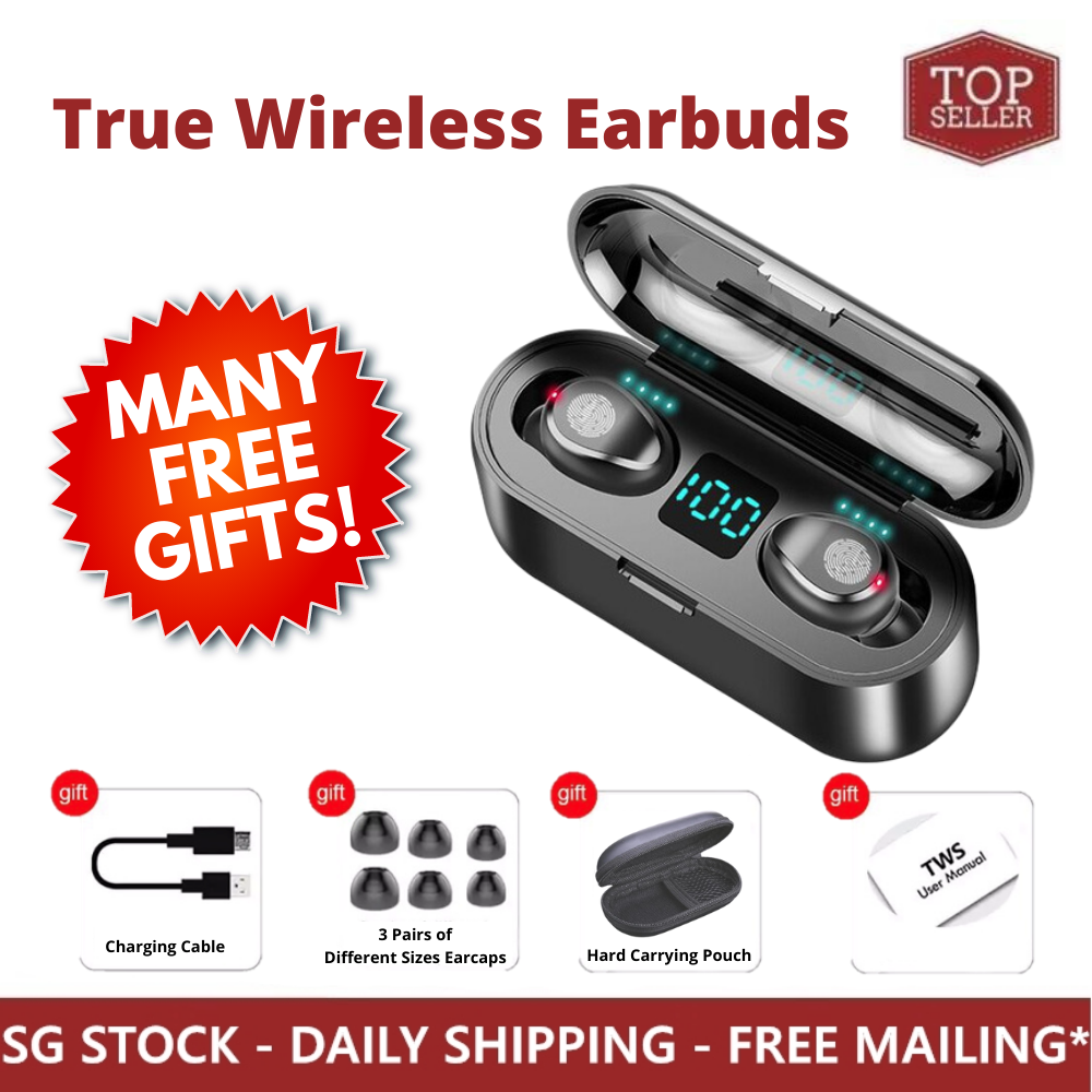 [TopSeller] F9 True Wireless Earbuds Stereo TWS Bluetooth V5.1 Earphones Headphones Headsets Waterproof Sweatproof IPX7 Sports HiFi Touch Control Call Voice Assistant With Mic Charging Case Phone Hold