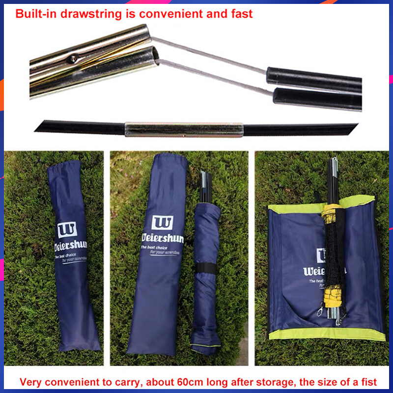 Product Name: Quick-opening Folding Badminton Net Frame Brand: Weko Weight: 750+10g Material: Carbon Fiber, Polyester Fiber, Pu Colour: Black Applicable Scene: Indoor/outdoor