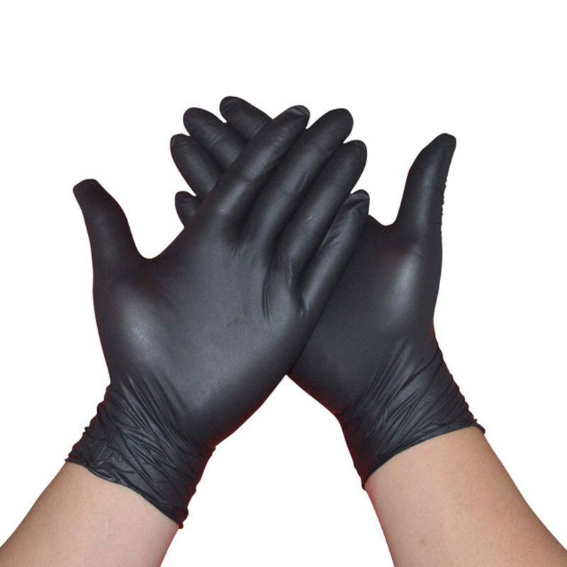 Audio Gool 100pcs Waterproof Allergy Nitrile Cleaning Gloves Rip Resistant Free Disposable Black Laboratory Work Safety Gloves