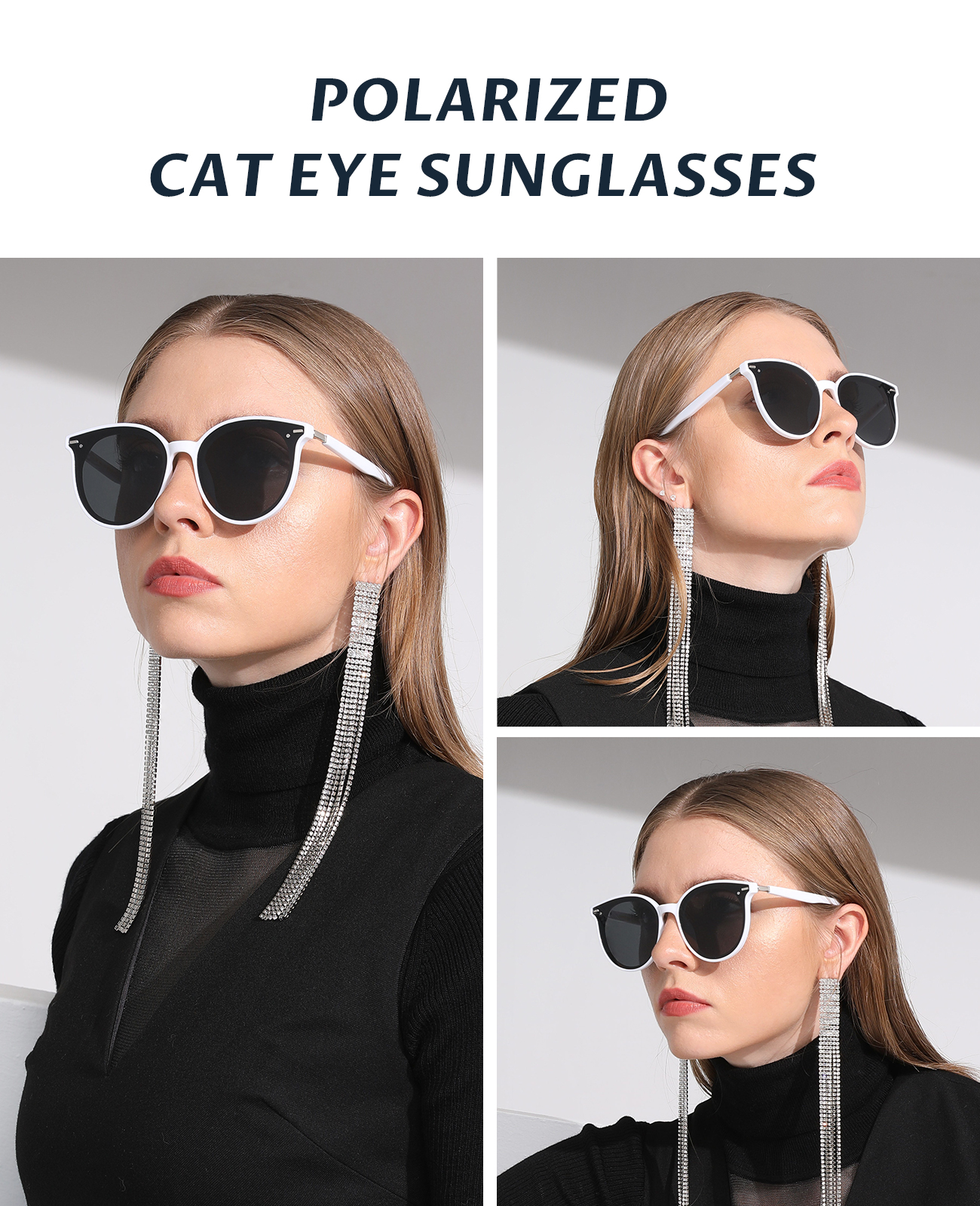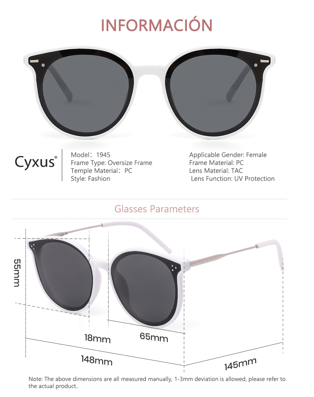 Cyxus Polarized Sunglasses For Women Anti Glare Reflection UV400 Fashion Sun Eyewear Clear Vision Round Frame Outdoor Driving Cycling Eyeglasses 1945