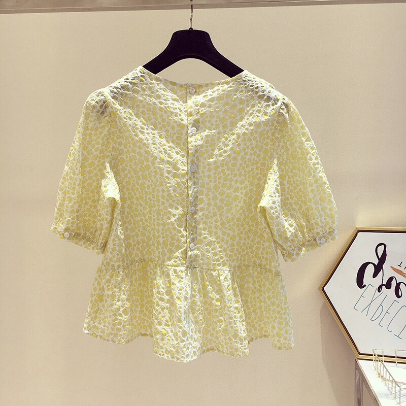 AFEG new Korean round neck fashion all-match polka dot short-sleeved blouse for women