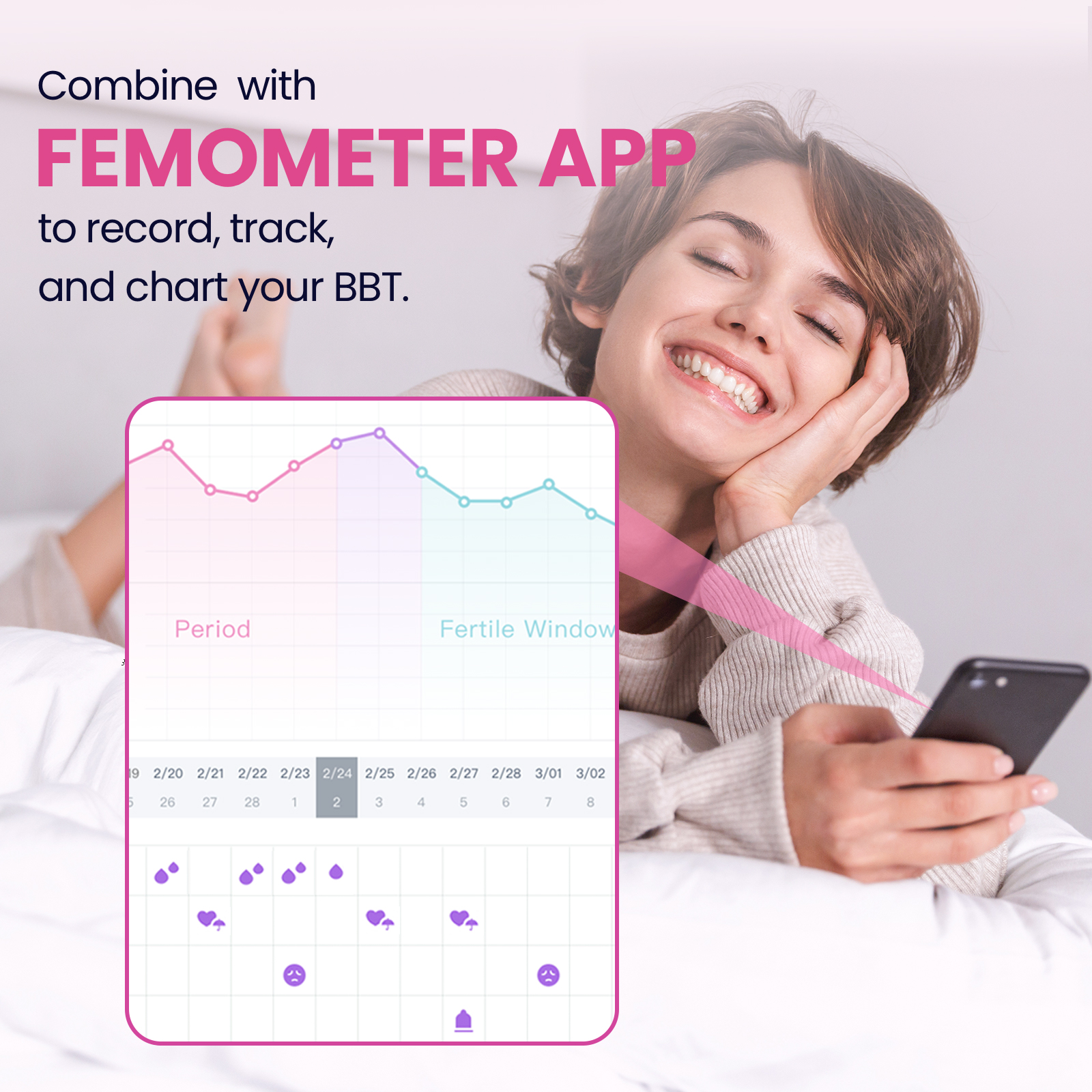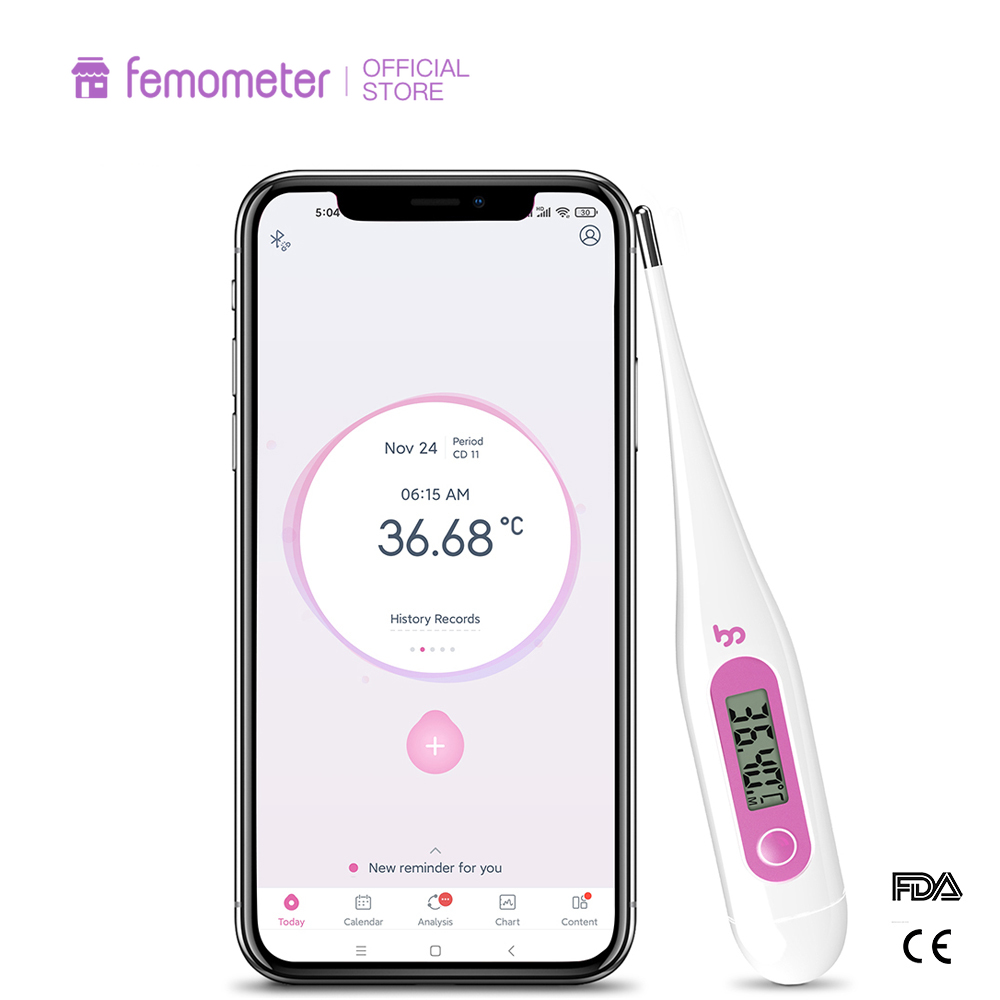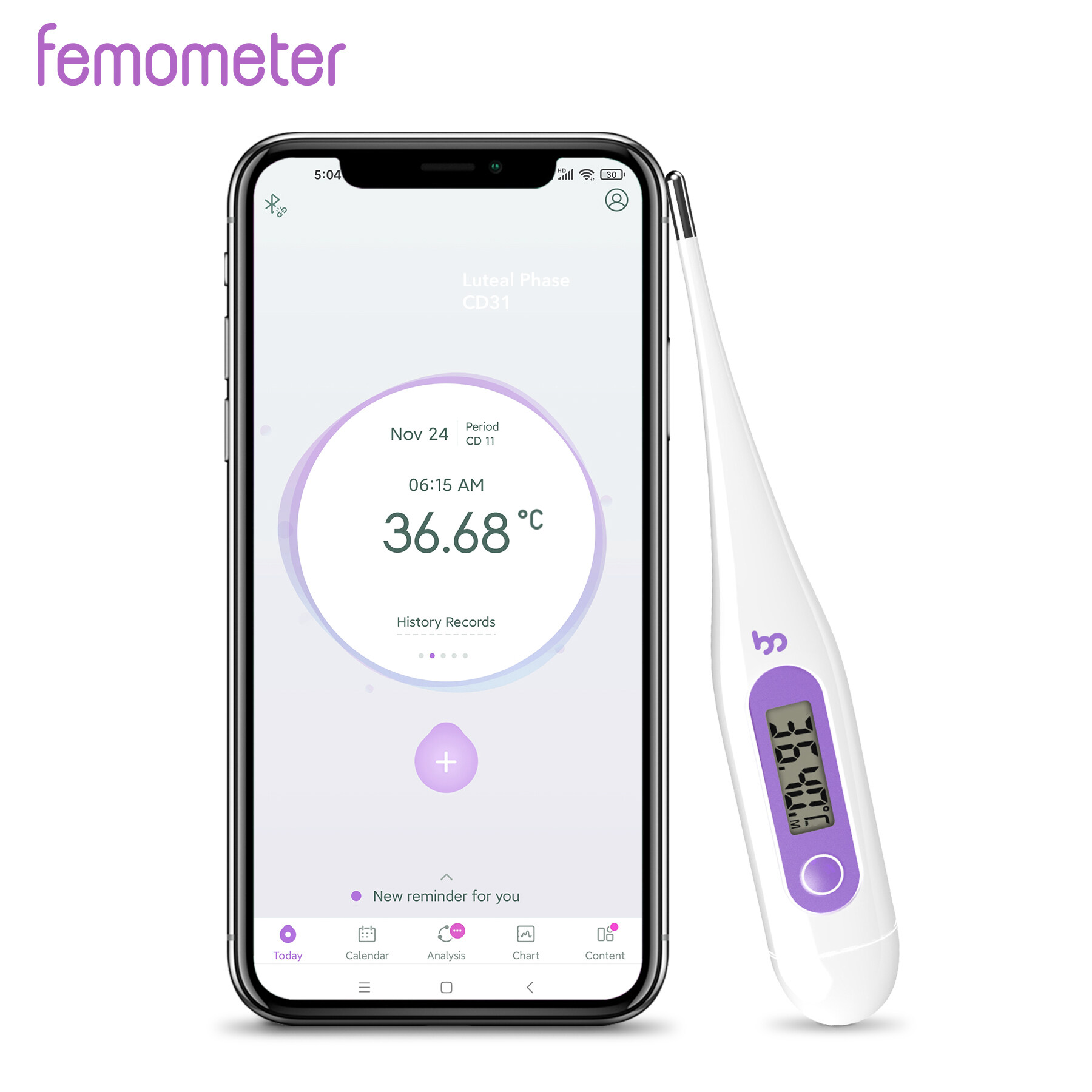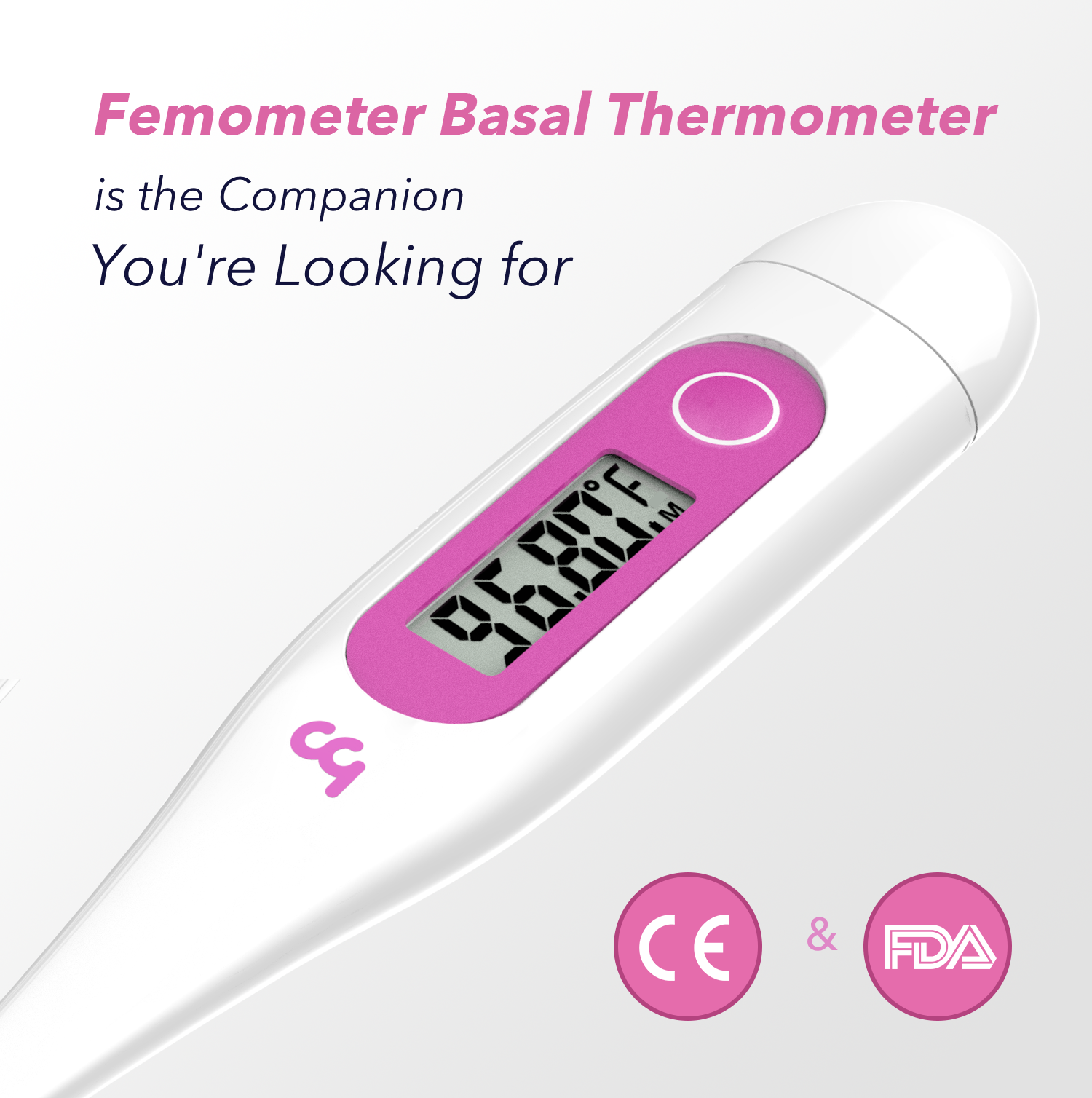 Femometer Digital Basal Thermometer with LCD Screen. This thermometer helps you test your basal body temperature in the early morning. Combine with Femometer app to record, track, and chart your BBT. And it intelligently analyzes your BBT and calculates pregnancy rate of every day, thus helps with pregnancy, early-stage pregnancy monitor and manage your menstrual cycle better.