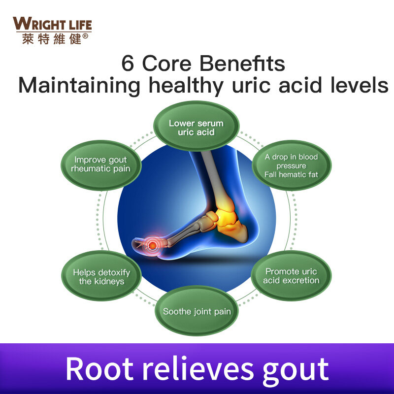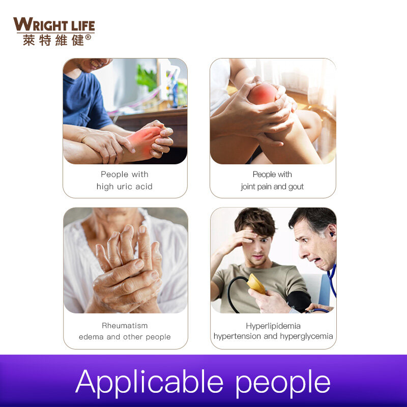 Helps to reduce serum uric acid, improve three high, maintain uric acid balance;Promote uric acid excretion and kidney detoxification, protect kidney function;Sootheius joint pain and swelling, improve gout: reduce the occurrence of gout and cardiovascular problems.