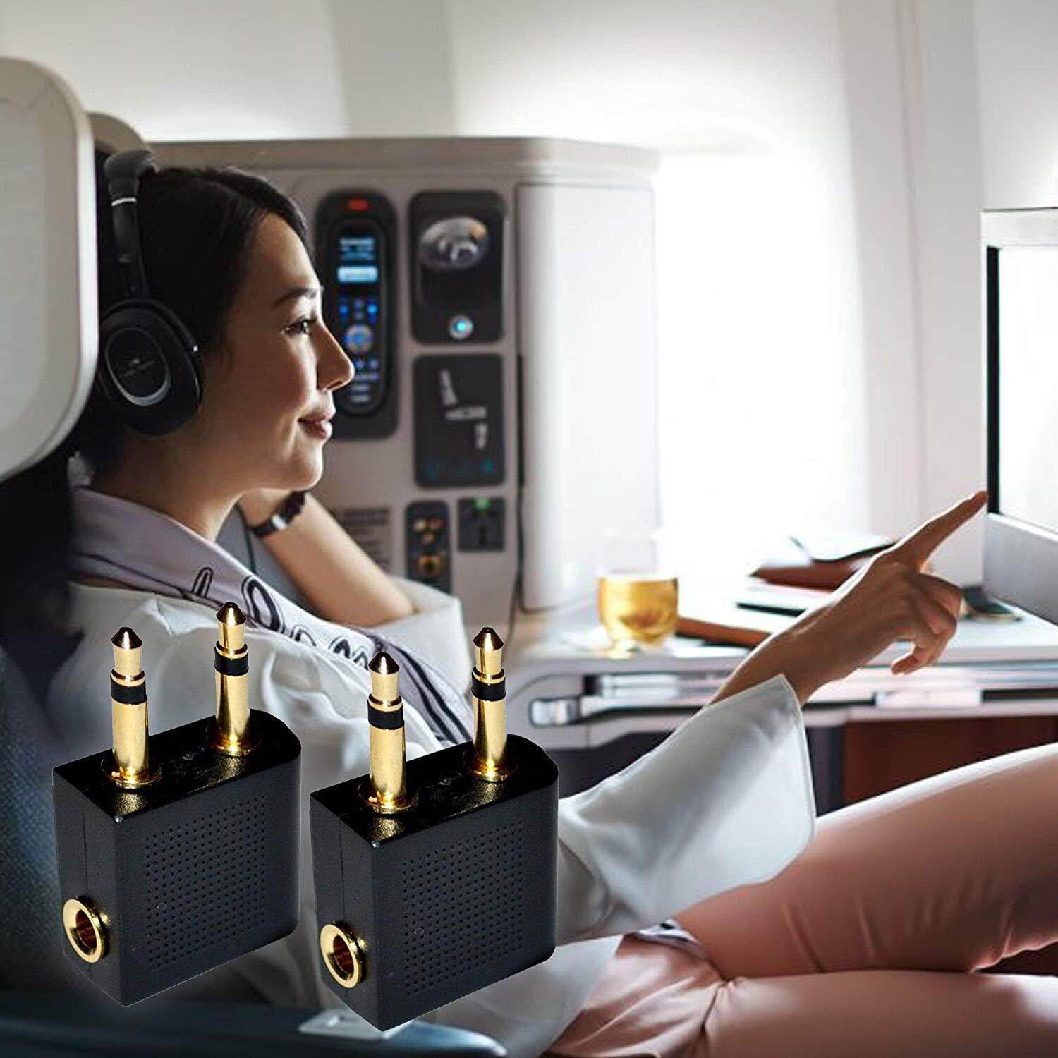 This in-flight adaptor connects your headphones one jack to in-flight entertainment systems equipped with dual plug headphone jack or single adapter headphone jack output 3.5 mm. Simply plug the airplane headphone connector into the adapter and insert the headphones connector into the airline headphone jack. This headphone adaptor and jack adapter airplane is essential for all airplane travels.