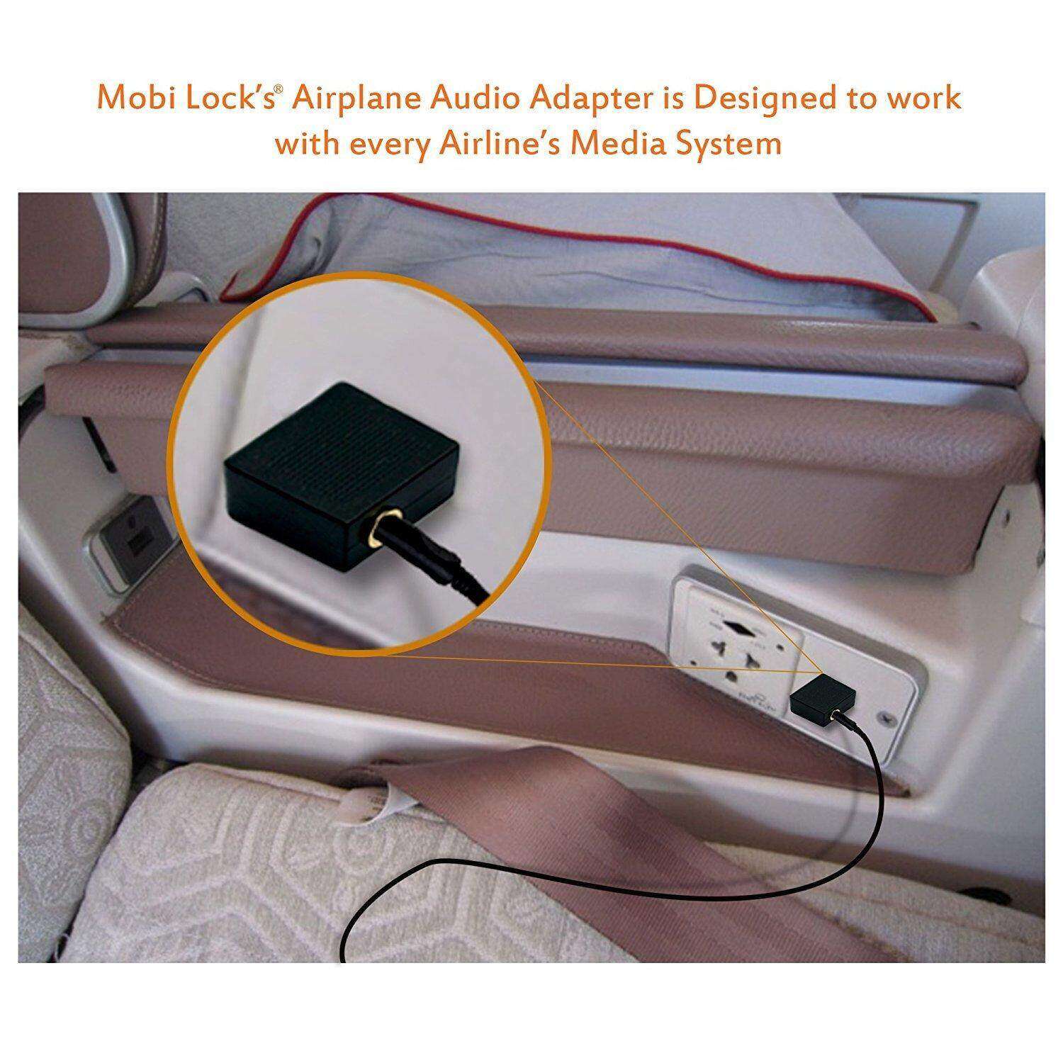 The airline adapters from Mobi Lock converts a standard headphone stereo mini plug to a dual-prong airline jack since most of the headphones (portable, noise cancelling) are equipped with the 1/8" plug. This dual plug headphone jack and airplane headphone jack is designed with a smaller rounded base to fit with the airline's prong jack.