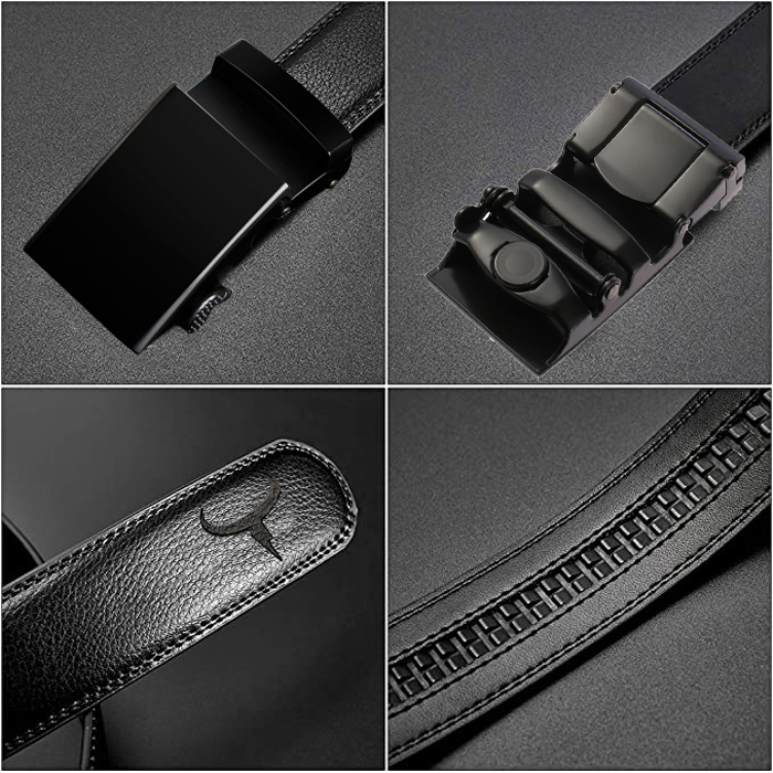 COWATHER Men Ratchet 3.5cm Leather Dress Belts with Genuine Cow Leather Slide Casual Belt for Men with Metal Automatic Lock Buckle, Fashion, Classic, Dress, Casual, Everyday Durable Belts