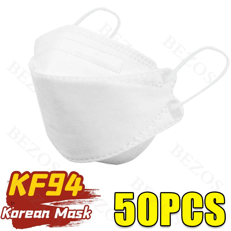 【Ready Stock】50pcs korean Mask KF94 4ply mask for adult 3D design facemask 4PLY Design Washable Breathable and Comfotable white&black mask Fast Deliver