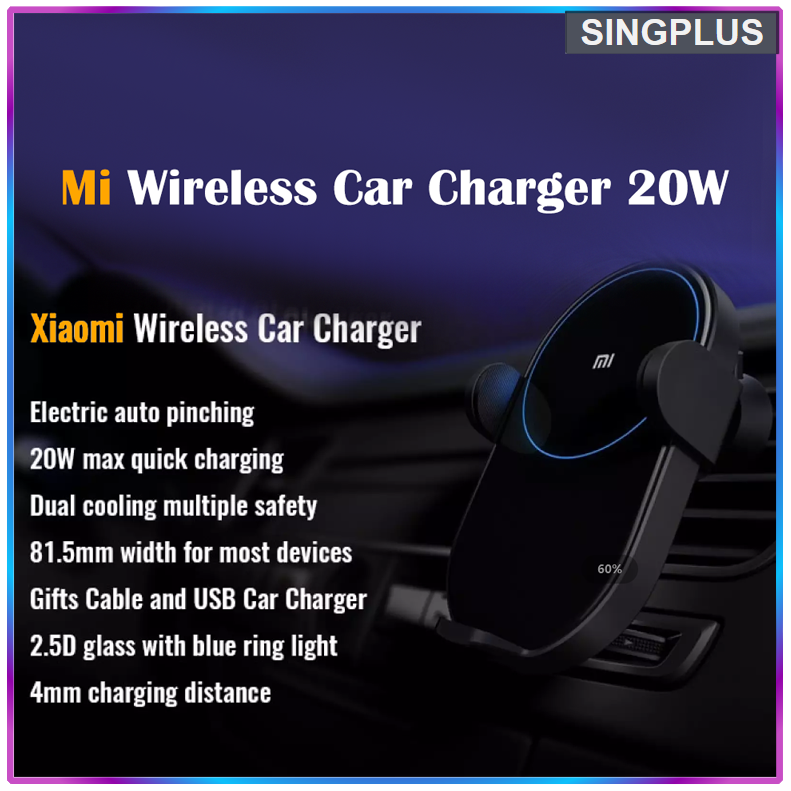 【SG LOCAL SELLER】 Original Mijia Wireless Car Charger [20W/50W] Max Electric Auto Pinch 2.5D Glass Ring Lit