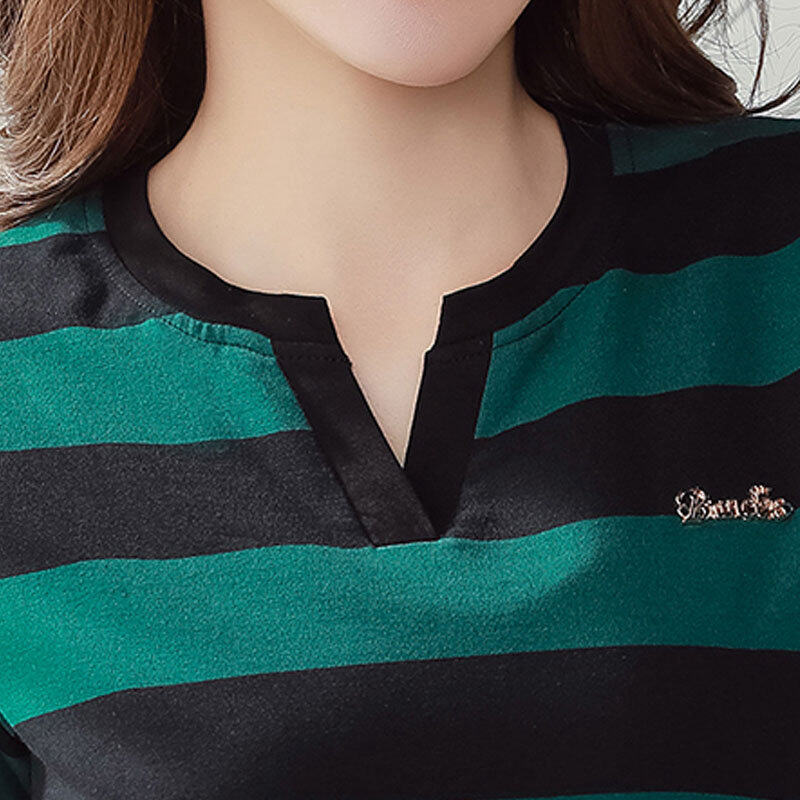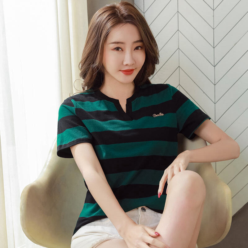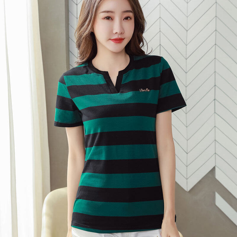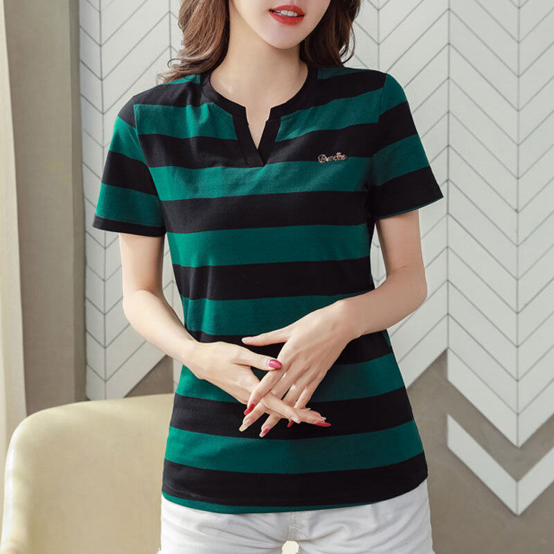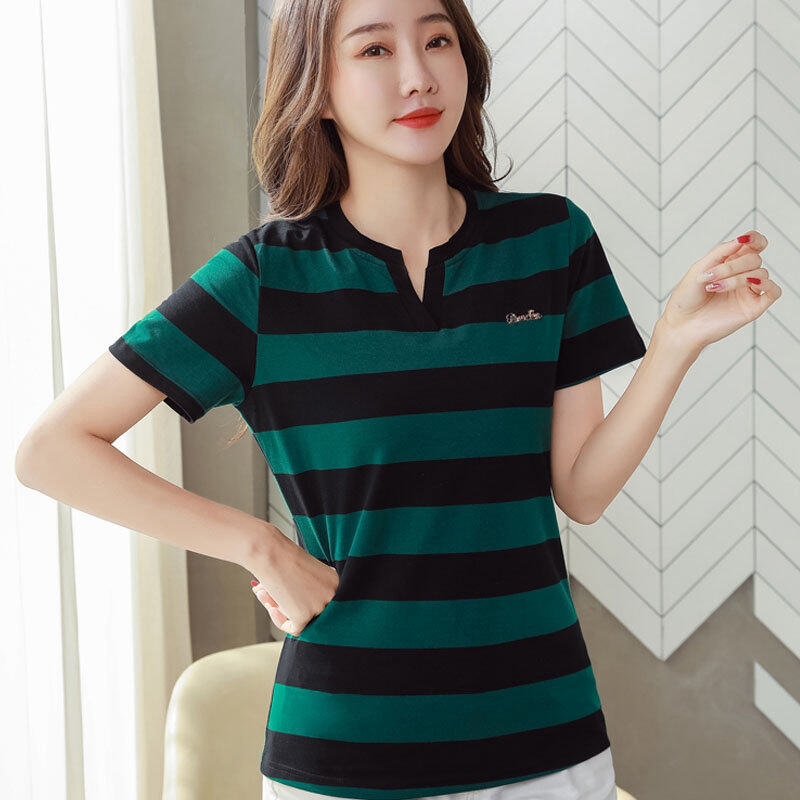 INWPLLR Women's Striped T-shirts Summer Women T-shirt Plus Size Short-sleeved Tshirt Korean Version Cotton Tee Tops Lady