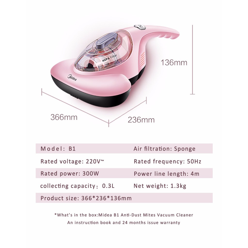 Midea B1 UV Anti Dust Mites Handheld Portable Vacuum Cleaner Hepa Powerful Suction Heat Application Dehumidification