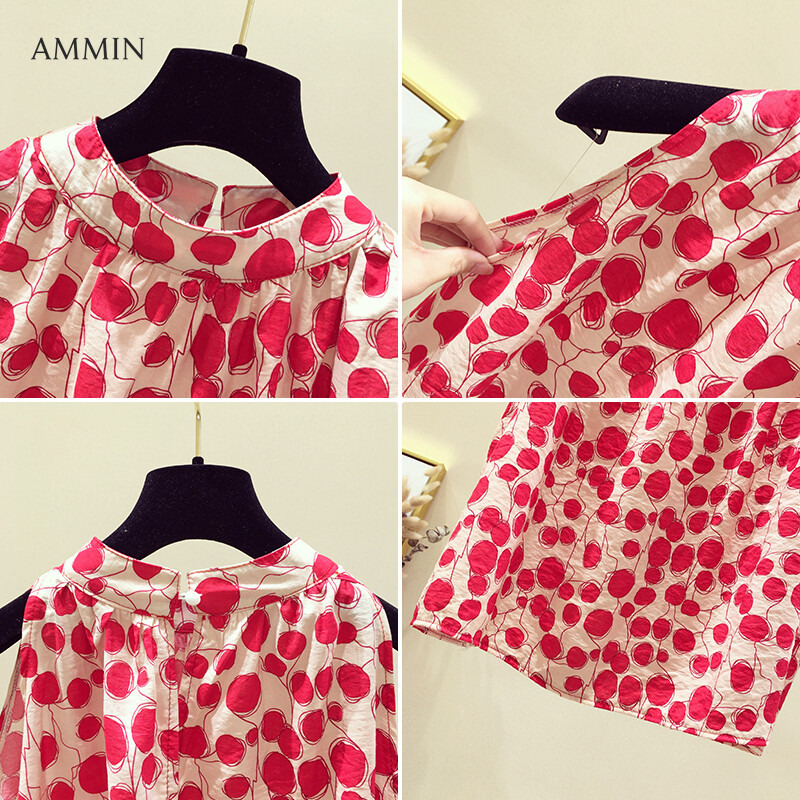 AMMIN Sleeveless chiffon t-shirt women's 2021 summer new Korean style loose floral printing off-shoulder foreign style small shirt leaking shoulder sweet blouse top