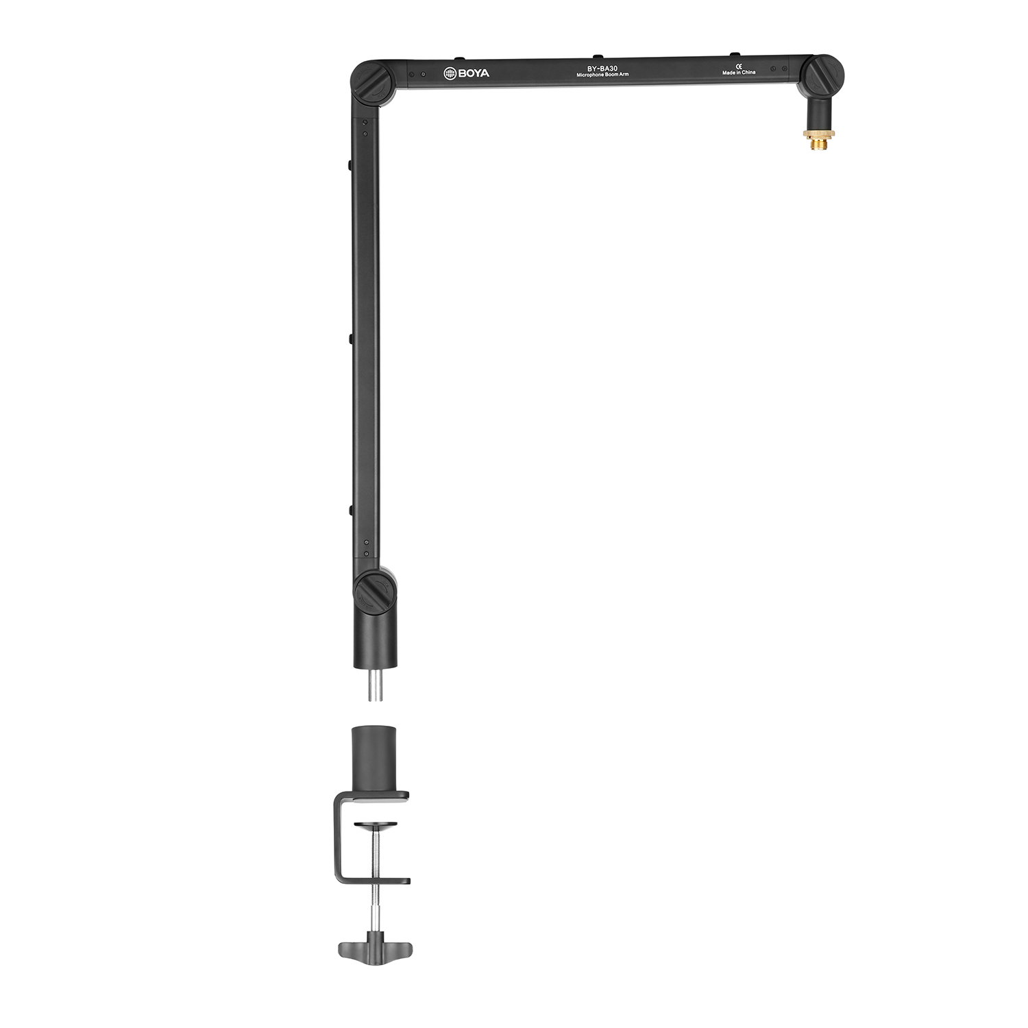 The BOYA BY-BA30 is a microphone boom arm, giving users with experience improvements when using their microphone. It can provide a maximum arm reach of 17" (horizontallength)/ 26" (vertical height). The boom arm can be attached to a desk via its C-clampmount , which can offers a stable placement on desktop operation.