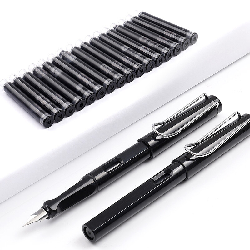 0.38mm Fountain Pen set with replaceable ink refill, 2 Pens + 50 disposable ink refills Student School&Office Stationery