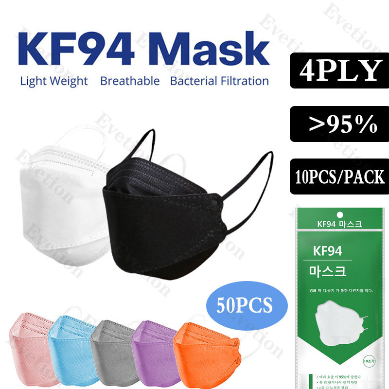 【Fast delivery MASK】Evetion 50pcs KF94 Face Mask Reusable Washable Korean original n 95 Face Mask 4 Ply Non-woven Breathing 3D Mask KN 95 Adult Mask White Black