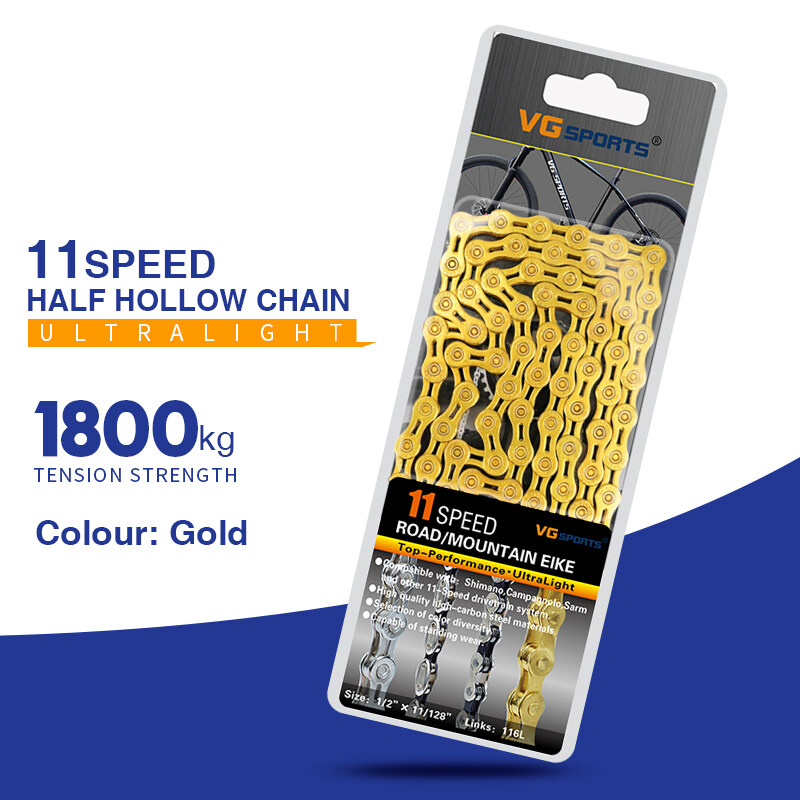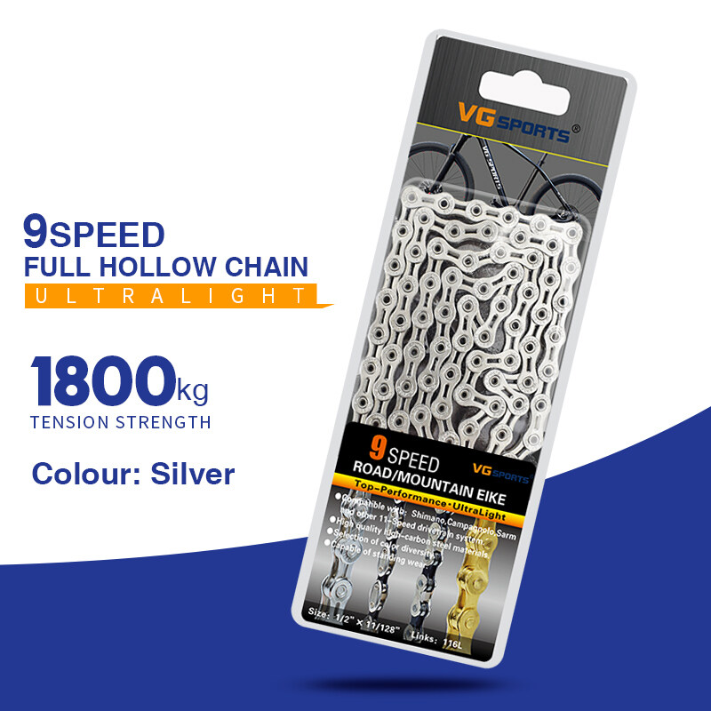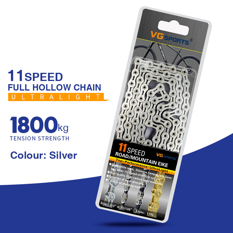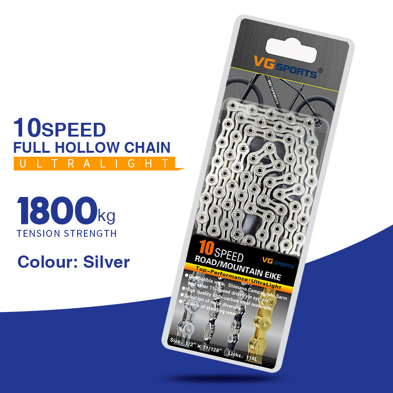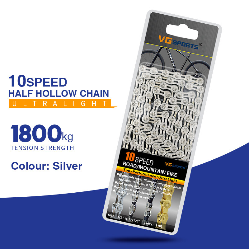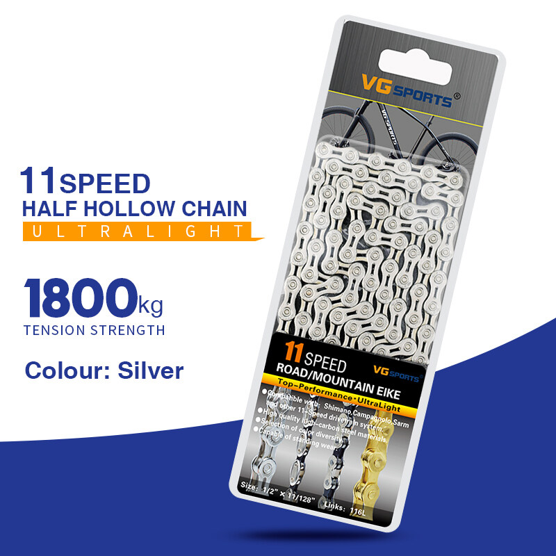 VG Sports 8 9 10 11 12speed Bicycle Chain Silver Half Hollow Bike Chain Mountain Road Bike Full Hollow Chains Ultralight 116L