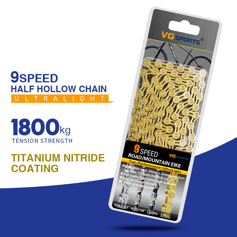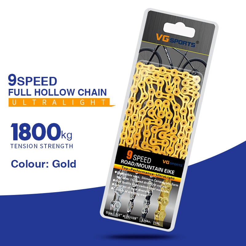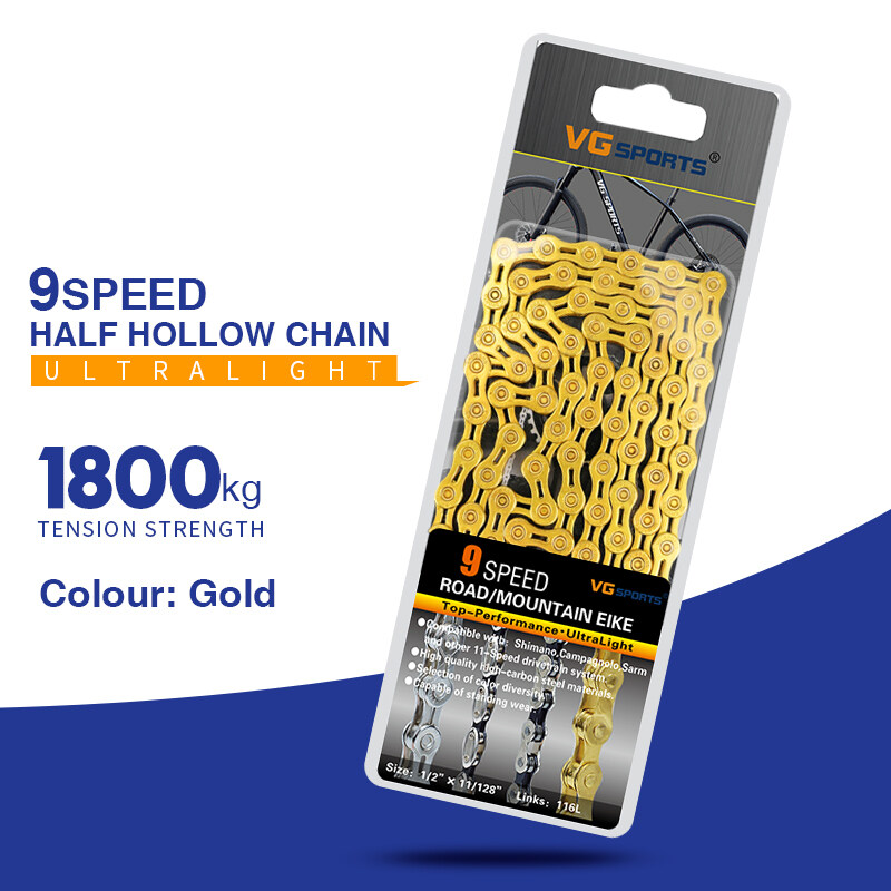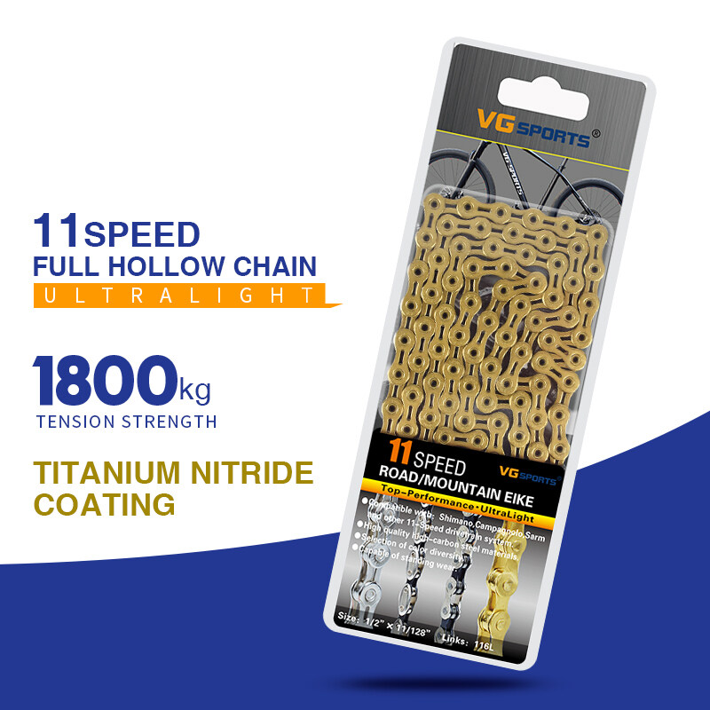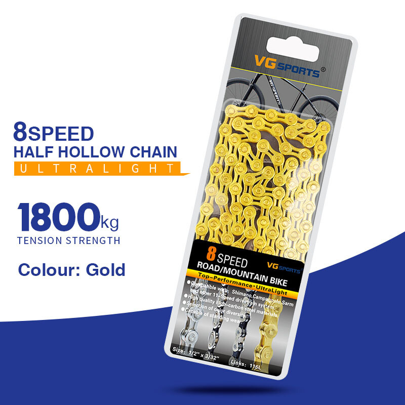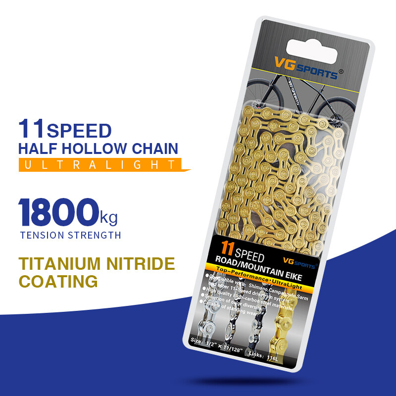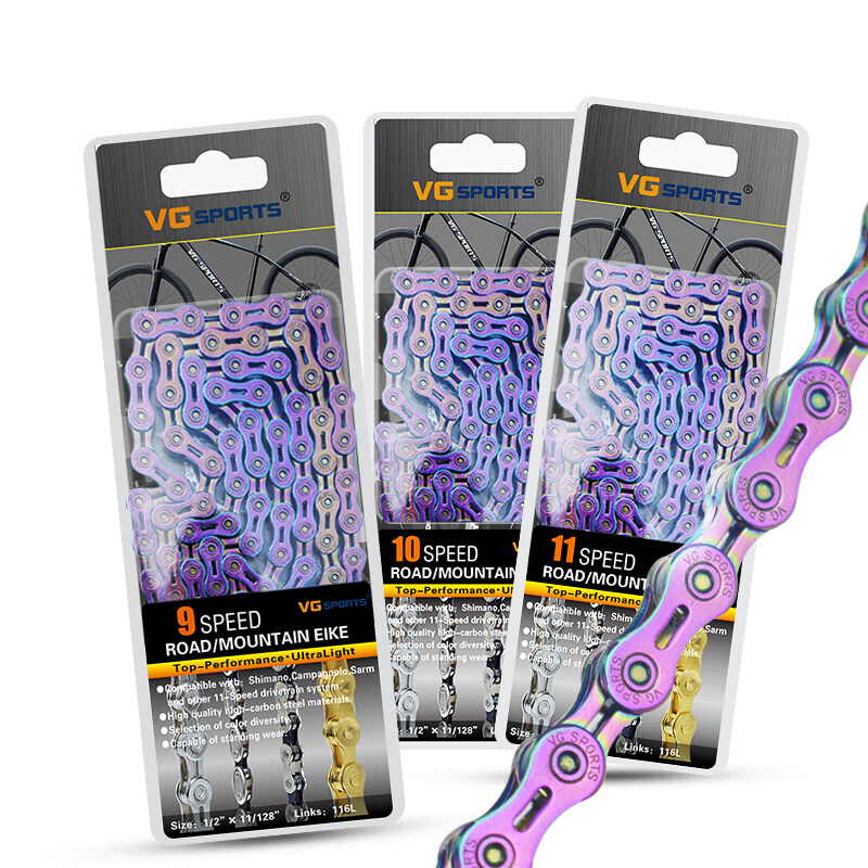 VG Sports 8 9 10 11 12speed Bicycle Chain Silver Half Hollow Bike Chain Mountain Road Bike Full Hollow Chains Ultralight 116L