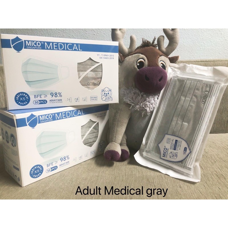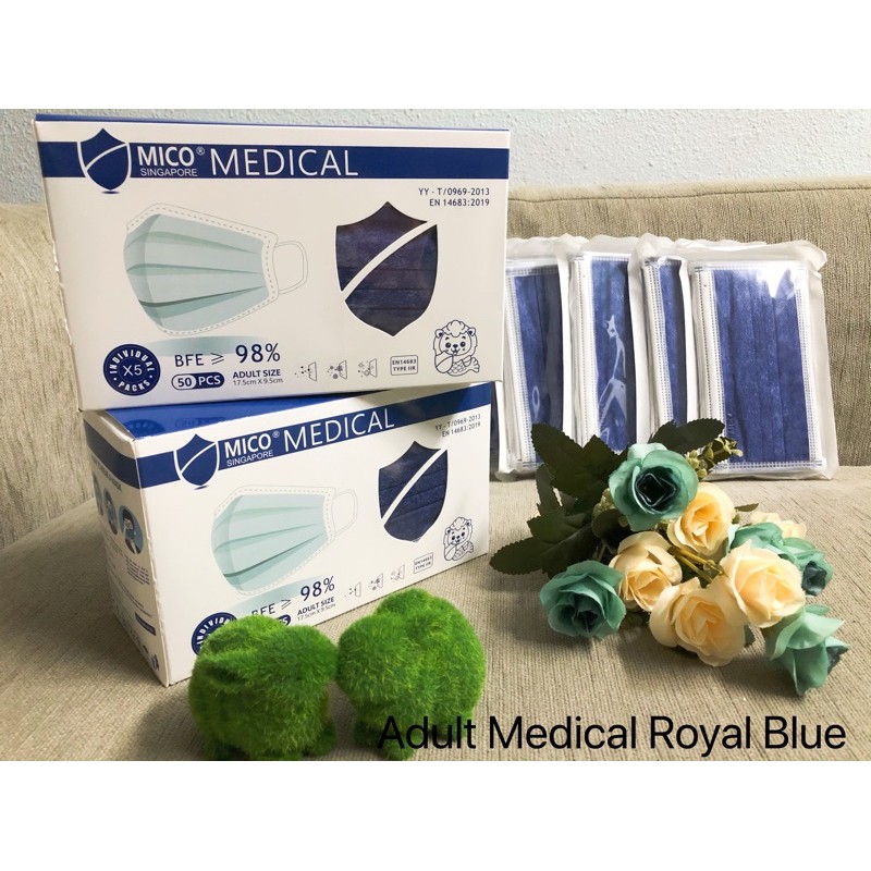 Product detail:- 3ply - 50pcs in a box - 5 packets of 10 mask- Efficient protective meltblown cloth- Comfortable non-woven fabric- Ultrasonic seamless technology- Strong plasticity nose strip- With MICO stamp on mask to prove authenticity - This product complies with the BFE and PFE standards specified by YY/T Surgical mask.