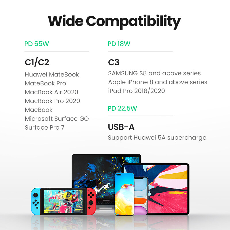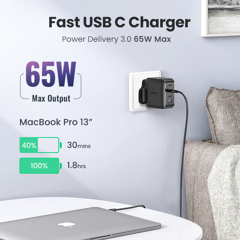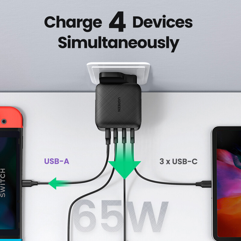 【Charge Smartly with Efficiency】Charge 50% within 30 min for iPhone 14/13, the UGREEN GaN PD Charger features fast charging for 4 devices at the same time.Intelligent power management delivers optimal charging power to fast charge your devices.