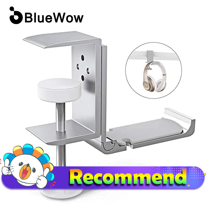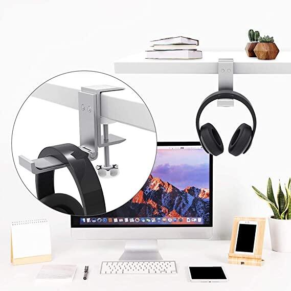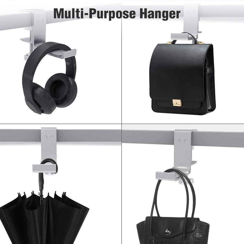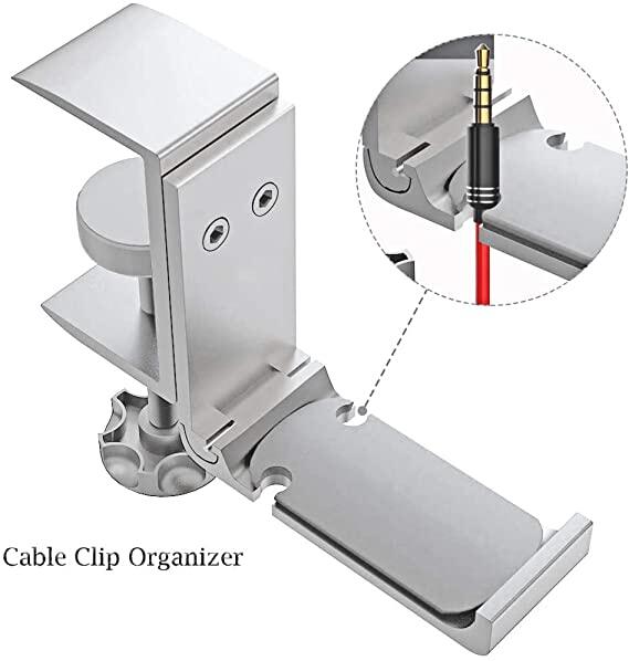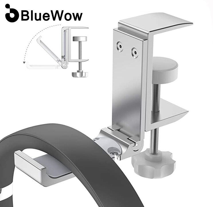 [2021 Upgrade] BlueWow XJL-DB02 Desk Hook Headphone Stand Hanger, Foldable Aluminum Alloy Headset Holder, Multi-Function Gaming Headset Hanger Mount with Cable Clip Organizer